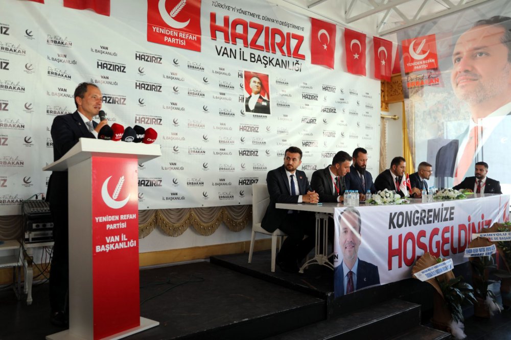 Partisinin İl Kongresine katılmak üzere Van'a gelen Yeniden Refah Partisi lideri Fatih Erbakan, Ferit Melen Havalimanında partililer tarafından karşılandı. Erbakan, burada araç konvoyu ile kongrenin yapılacağı kent merkezindeki otele geldi. Kongrede Van İl Başkanlığına Göksel Yarız seçildi. İktidar ile muhalefet partileri arasında kavga olduğunu söyleyen Erbakan, "Hepiniz kayıkçı kavgasını çok yakinen izliyorsunuz. Bir tarafta kasa başındakiler, diğer tarafta da masa başındakiler. Sanki birbirlerinden bir farkları varmış gibi kör dövüşü yapıyorlar ve kayıkçı kavgasını devam ettiriyorlar. Milli görüş hiç yokmuş gibi davranıyorlar. Varsa yoksa masa başındakiler ile kasa başındakiler. İktidarı destekliyorsan kasa başındakilere gideceksin, muhalefeti destekliyorsan masa başındakilere gideceksin. Vatandaşa, seçmene başka bir alternatif veya seçenek göstermiyorlar. Biz Yeniden Refah Partisi, milli görüş olarak ne masa başındakilerle ne de kasa başındakilerle birlikteyiz. Bu milletin önüne konulan masa başındakiler ve kasa başındakiler oyununu biz bozacağız Allah'ın izniyle. Masa başındakilerin bir kısmı AK Parti içerisinde 10 seneden fazla bulundu. Dışişleri Bakanlığı, Hazine ve Maliye Bakanlığı, ekonomiden sorumlu devlet bakanlığı, Başbakanlık, Cumhurbaşkanlığı gibi en kritik bakanlıklarda 10 seneden fazla süre beraber görev yaptılar. Bu ülkeyi birlikte borçlandırdılar, milyarlarca doları faize birlikte verdiler. Bu ülkenin bu devletin varlıklarını birlikte satıp yok ettiler. Geçenlerde bir tanesi satışlarla ilgili canlı yayında usulsüzlük iddasında bulundu. Sonra baktılar ki o usulsüz dediği ihalenin tarihinde o iddiayı yapan kişi de kabinede bakanlar kurulunda bir bakan olarak bulunuyor. Dünya kadar devletin, milletin varlıkları satılırken, onlarda bunun altında imzası olan o hükümetlerde bakan olan kimseler. Zengini daha zengin, fakiri daha fakir yapan Kemal Derviş ekonomi modelini yıllarca birlikte uyguladılar. Tarım ve hayvancılığı birlikte bitirdiler. Irak'ın, Libya'nın, Suriye'nin bu hale gelmesinde hep birlikte pay sahibiler. Altında Başbakan, Dışişleri Bakanı olarak altında imzaları var. Şimdi çıkmışlar bütün bu gerçeklerin karşısında diyorlar ki 'Türkiye'yi biz kurtaralım'. Madem kurtaracaktın 10 seneden fazla iktidarda en kritik görevlerde bulunurken bunu yapsaydın" dedi.