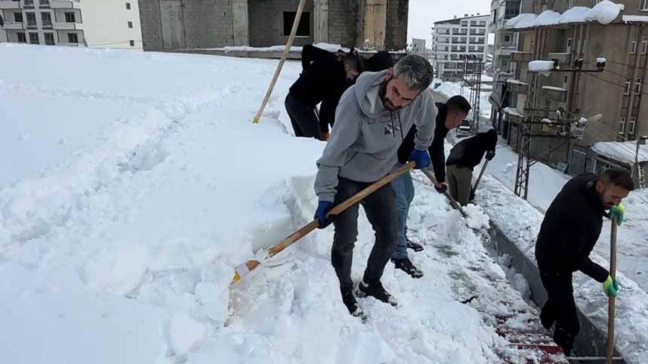 20 kişilik bir grup oluşturarak el birliğiyle temizliğe başladık. Hava sıcaklığı özellikle geceleri eksi 30 derecelere kadar düşüyor. Bu dondurucu soğuğa rağmen çatıyı tamamen temizleyerek riskleri ortadan kaldırmayı hedefliyoruz" dedi.