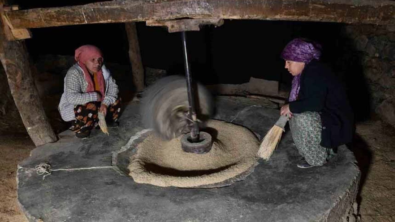 Bitlis’in Hizan ilçesine bağlı Karbastı köyü ve bağlı bulunan mezralarda ekilen çeltikler, asırlık su değirmeninde pirinç haline getiriliyor.