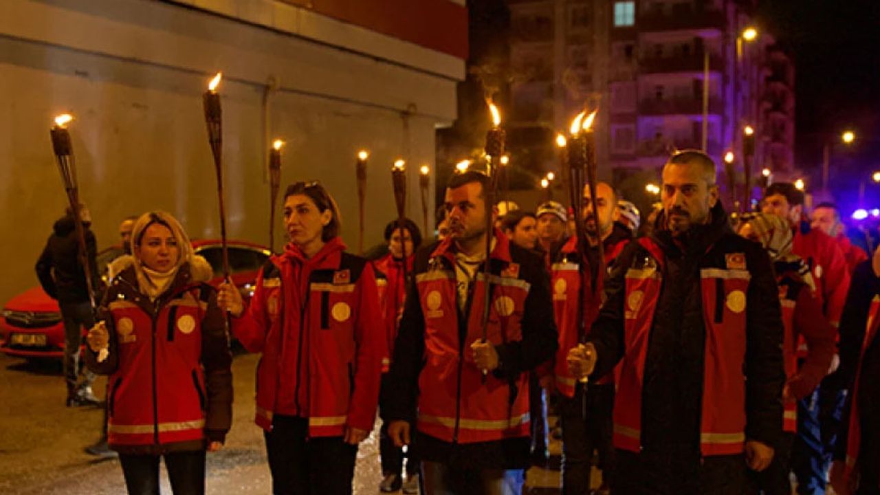 Yürüyüşün ardından depremin yaşandığı saat 04.17'de kentteki tüm camilerden sela okundu.