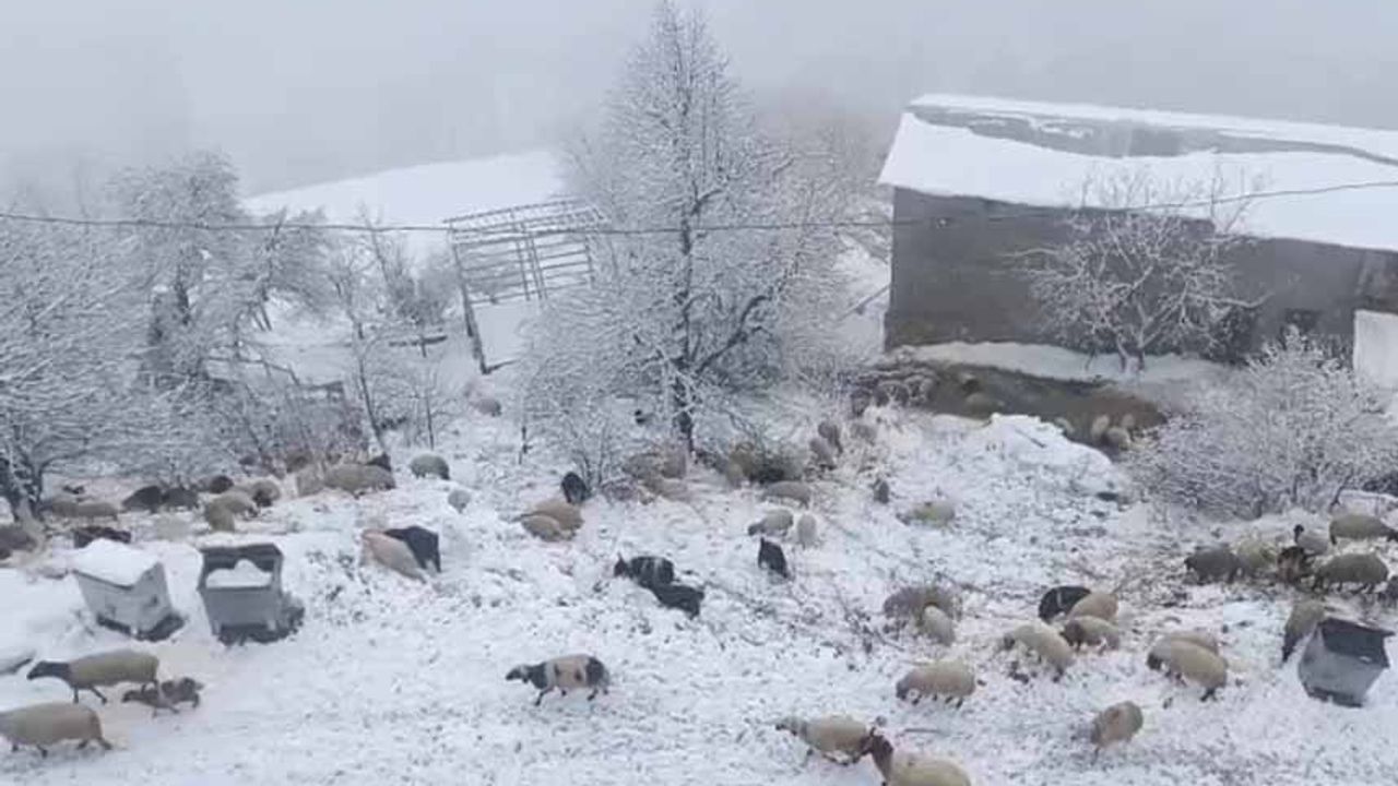 Kar kalınlığı yüksek kesimlerde 50 santimetreye ulaştı. Karla beraber ilçenin Arvas Mahallesi sakinleri hayvanlarını ahırda biriken kar yığınlarını temizleyip kar üzerine serdikleri ot ve samanla besledi.