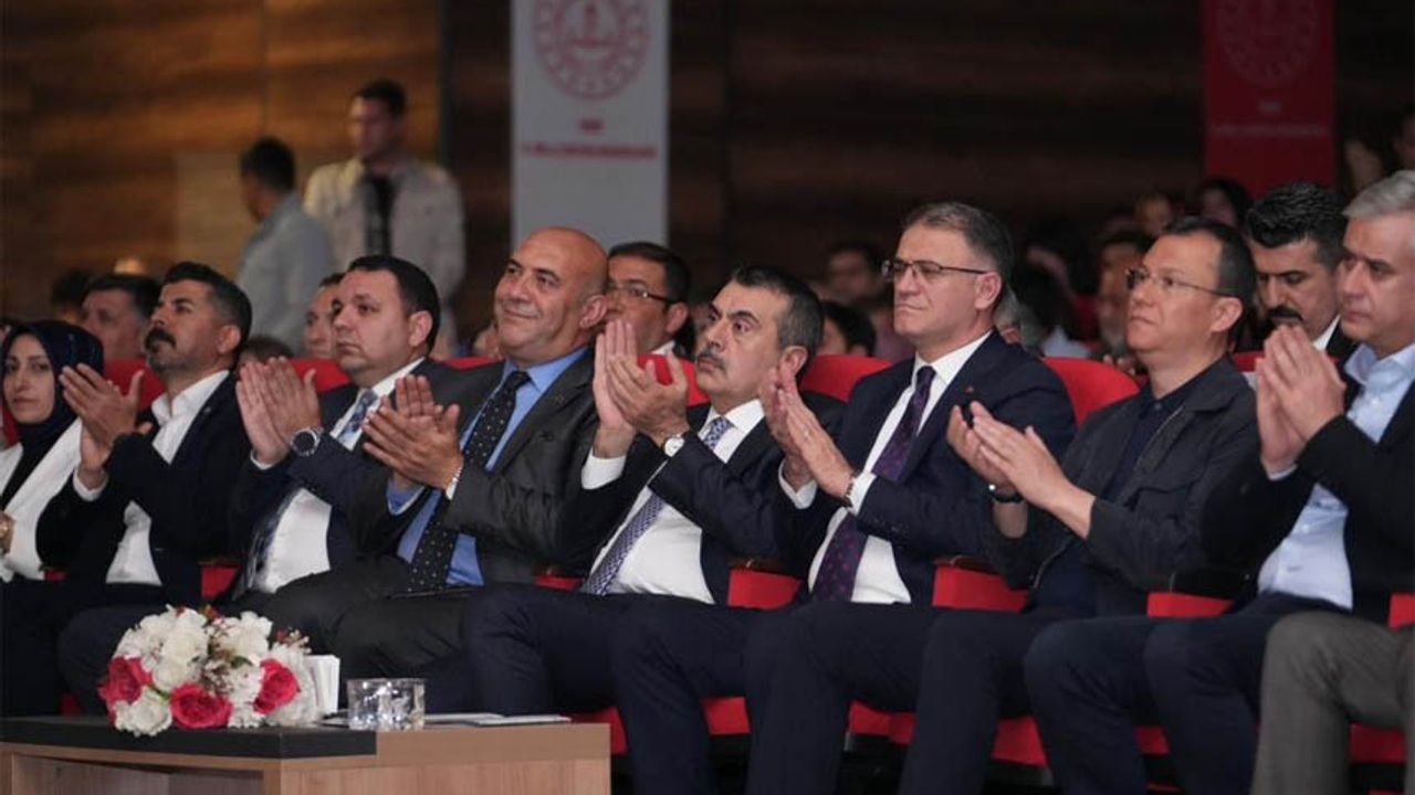 Kültür yayınlarında telif eser konusunda sorun yaşandığını dile getiren Tekin, "Bu yıl şöyle bir şey başlatıyoruz, bunu da buradan duyurmuş olayım. Hikaye, öykü ve roman yazan öğretmen arkadaşlarımızın bu tür eserlerini Talim ve Terbiye Kurulu Başkanlığımız değerlendirecek ve sonuçta da bütün öğrencilerimize, bastırıp öğretmen arkadaşlarımızın yazdığı kültür eserlerini ders kitaplarını dağıtır gibi dağıtacağız. Bunu da bir yarışma formatında yapmış olacağız. Öğretmen arkadaşlarımıza bunu buradan duyurmuş olayım." ifadelerini kullandı.