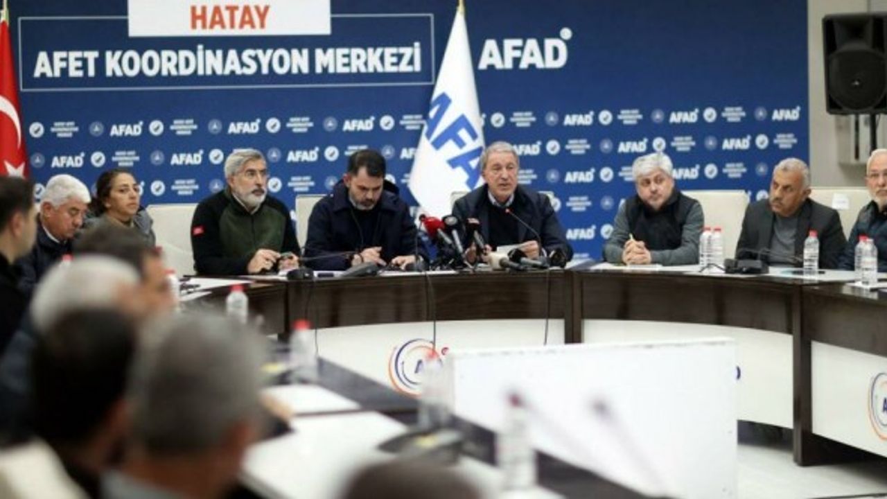 Çevre, Şehircilik ve İklim Değişikliği Bakanı Kurum ve Milli Savunma Bakanı Akar, Antakya AFAD‘da Proje Alanları Koordinasyon Toplantısının ardından açıklamalarda bulunuyor