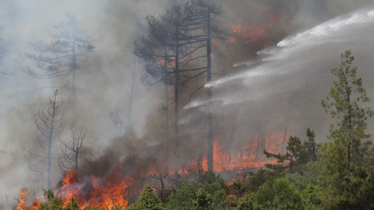 Rüzgarın da etkisiyle kısa sürede büyüyen yangın, çevredeki yerleşim alanlarını tehdit etmeden kontrol altına alınmaya çalışılıyor.