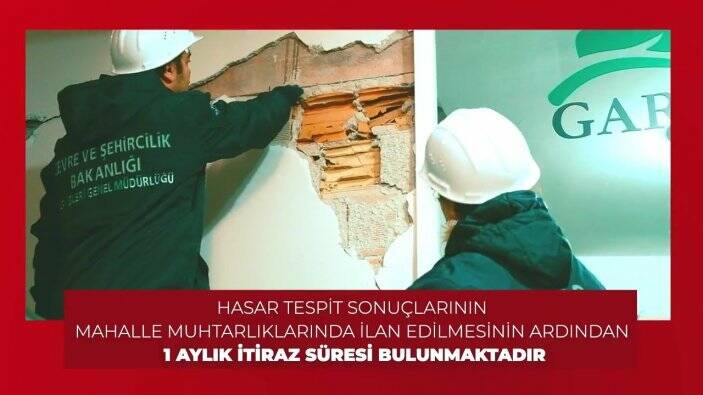 Hasar tespit sonuçlarının mahalle muhtarlıklarında ilan edilmesinin ardından 1 aylık itiraz süresi bulunmaktadır.