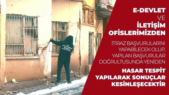 Bu süre içerisinde vatandaşlar e-Devlet ve iletişim ofislerinden itiraz başvurularını yapabilecek olup, yapılan başvurular doğrultusunda yeniden hasar tespit yapılarak sonuçlar kesinleşecektir.