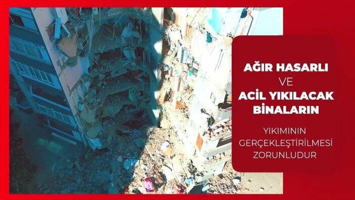 Ağır hasarlı ve acil yıkılacak binaların kullanılmaması ve kontrollü bir şekilde yıkımının gerçekleştirilmesi zorunludur.