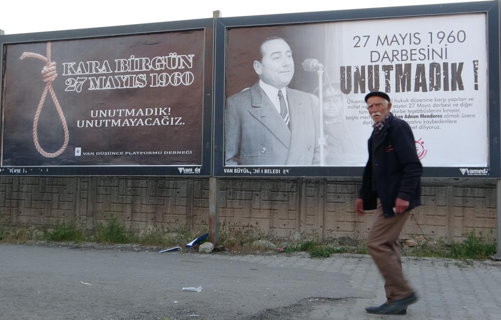 CHP Genel Başkanı Kemal Kılıçdaroğlu ile partili tüm belediye başkanlarının Van'daki kampı bugün başlarken, ‘27 Mayıs Darbesi’nin yıl dönümü nedeniyle kentteki reklam panolarına ve billboardlara asılan "Menderes’i astınız, Özal’ı zehirlediniz, Erdoğan’ı yedirmeyiz" yazılı afişler dikkat çekti.
