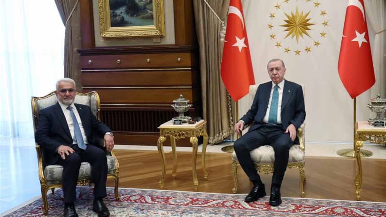Cumhurbaşkanı Erdoğan, HÜDA PAR Genel Başkanı Zekeriya Yapıcıoğlu'nu Cumhurbaşkanlığı Külliyesi'nde kabul etti. Basına kapalı gerçekleşen kabulden fotoğraf paylaşıldı.