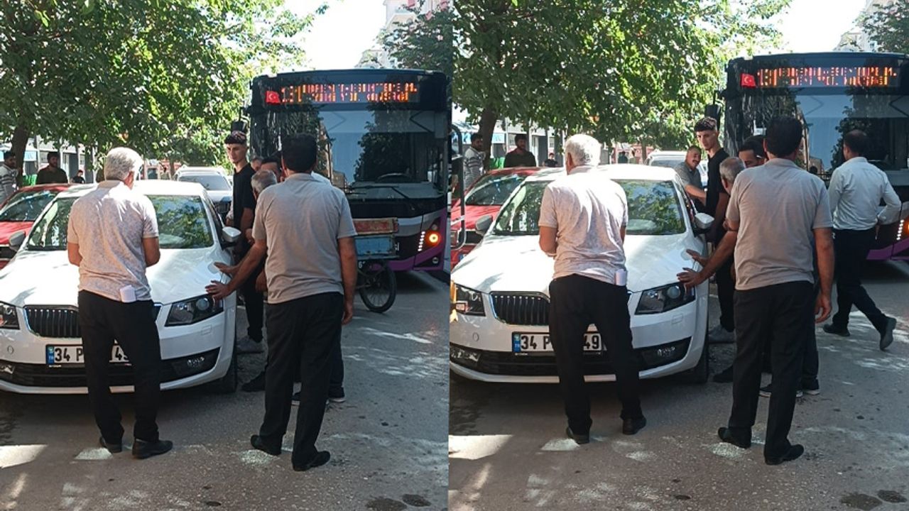 Bunun üzerine çevredeki vatandaşlar, uzun süre bekleyen belediye otobüsünün geçişine izin vermek için otomobili el birliğiyle yoldan çekti.