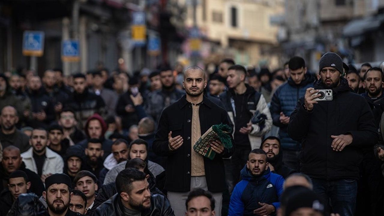 İsrail'in İran'a saldırıları bahane göstererek 1967'de Doğu Kudüs'ün işgalinden bu yana ilk kez bir bayram namazında Mescid-i Aksa'nın kapatılmasına tepki gösteren Filistinliler, Aksa'ya çıkan yollarda toplanarak yoğun kalabalıklar oluşturdu.