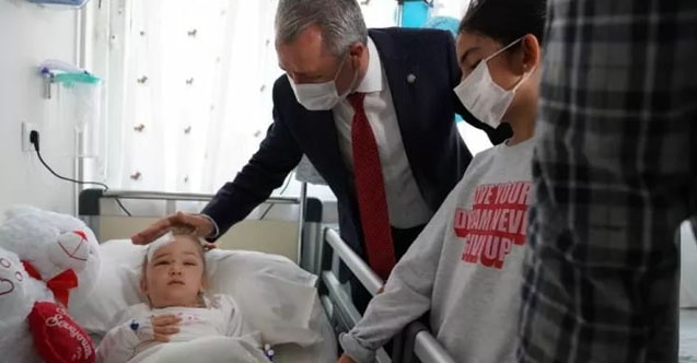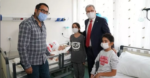 Rektörü Prof. Dr. Necdet Budak, tedavisi süren Elif Perinçek'i, küçük kızın babası, tedavi gören annesi ve ikiz ablalarıyla ziyaret etti.