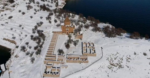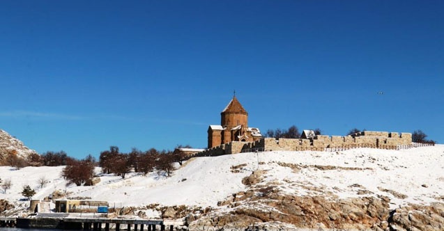 Kar yağışının ardından beyaz örtüyle bezenen ada, yaz aylarında olduğu gibi kış mevsiminde de ziyaretçilerini büyülüyor. Yerli ve yabancı turistlerin uğrak yeri olan Akdamar Adası'nın beyaza bürünmüş hali, Van Gölü'nün turkuaz mavisiyle birleşince ortaya seyrine doyumsuz manzaralar çıktı.