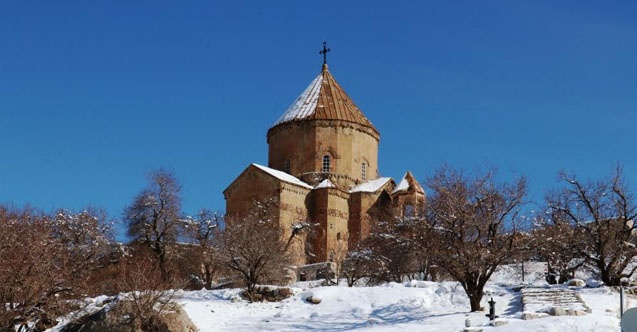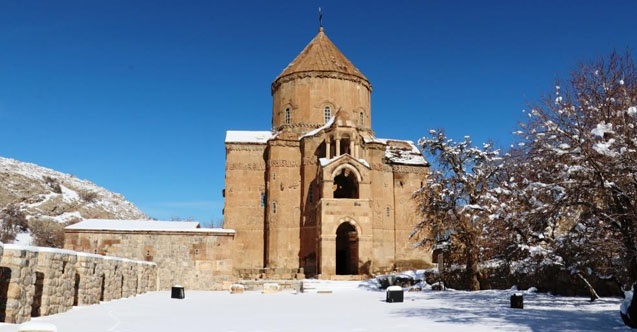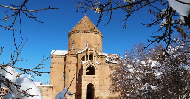 Van'ın önemli turizm merkezleri arasında yerini alan ve her mevsim gelen konuklarına farklı güzellikler sunan Akdamar Adası, kar yağışıyla birlikte beyaza büründü.