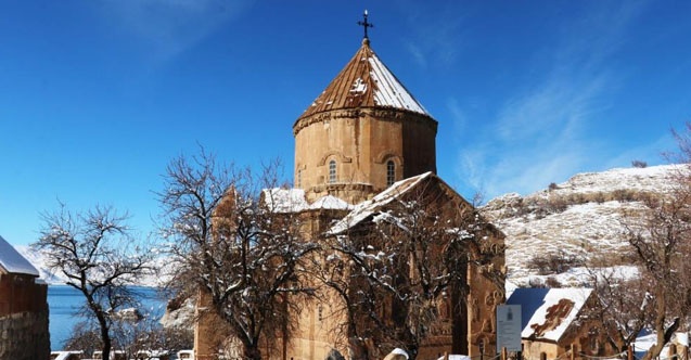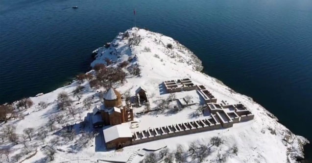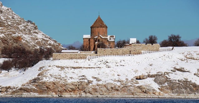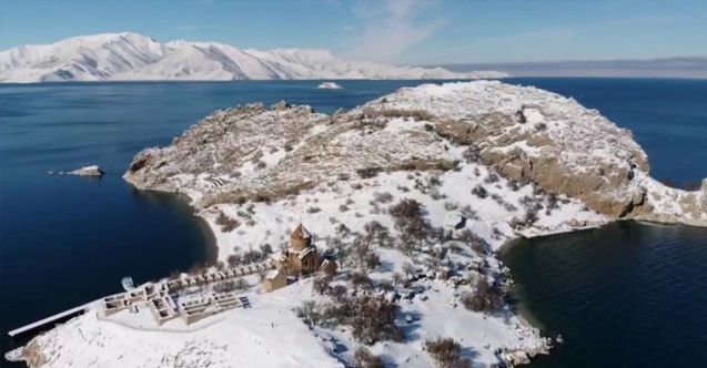Van Gölü’nde bulunan ve kentin en önemli turizm değerleri arasında gösterilen Akdamar Adası, kış mevsimiyle birlikte farklı bir güzelliğe büründü.