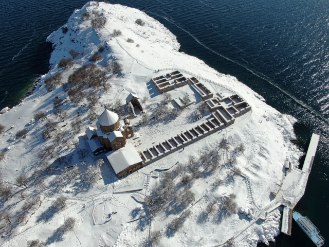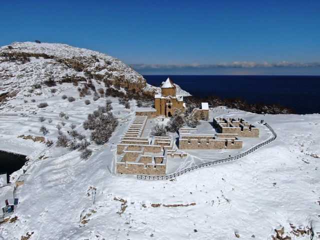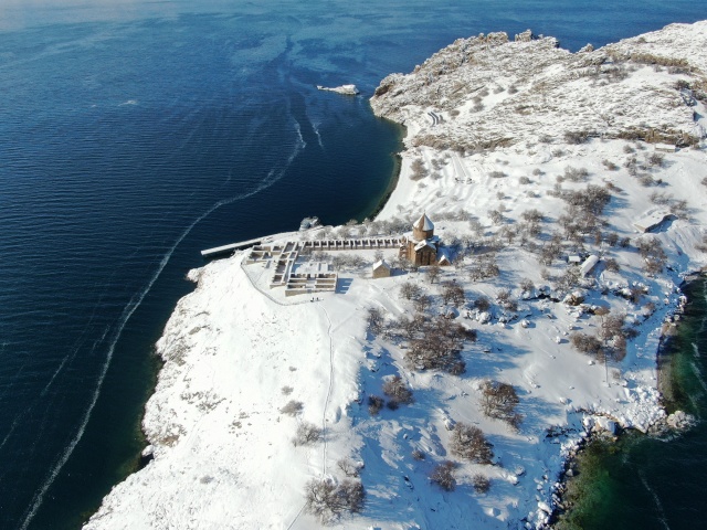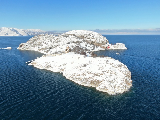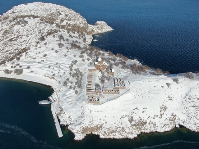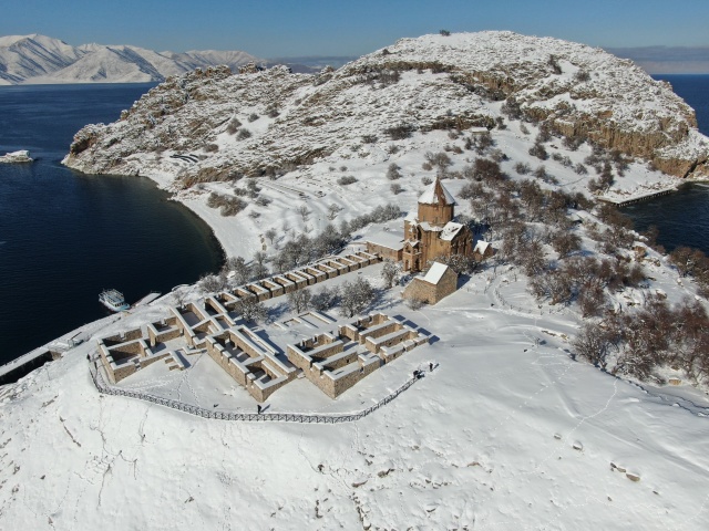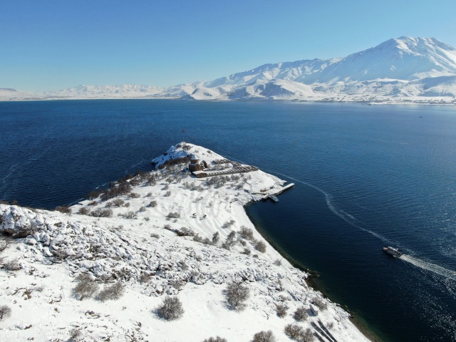Akdamar Adası'nın kış manzarası ziyaretçilerini büyülüyor