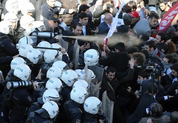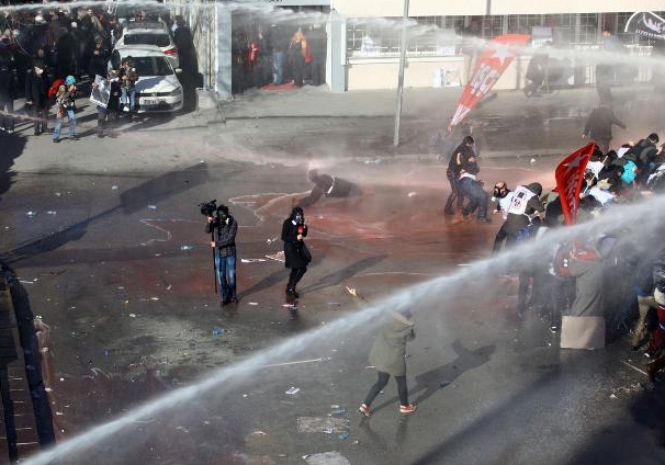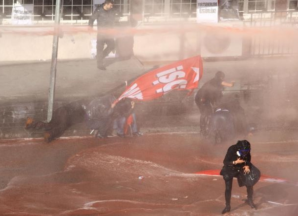 Huffington Post “Türkiye’deki protestodan şoke eden 19 kare” başlığıyla verdiği haberde ilk sırayı muhabirin tazyikli suyla vurulduğu bu kareye verdi.