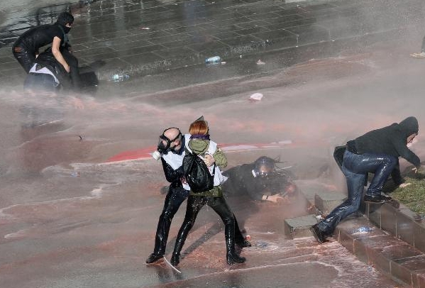 Business Insider, ‘Muhabirin biber gazı ve tazyikli su ile vurulduğu bu fotoğraf delice’ başlığını attı.