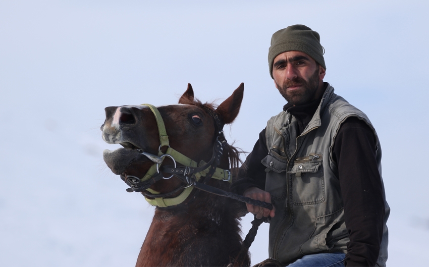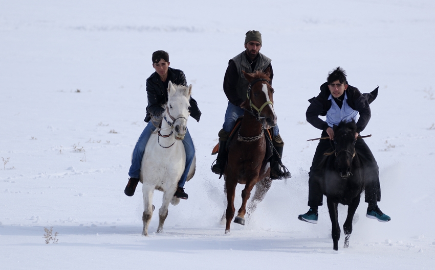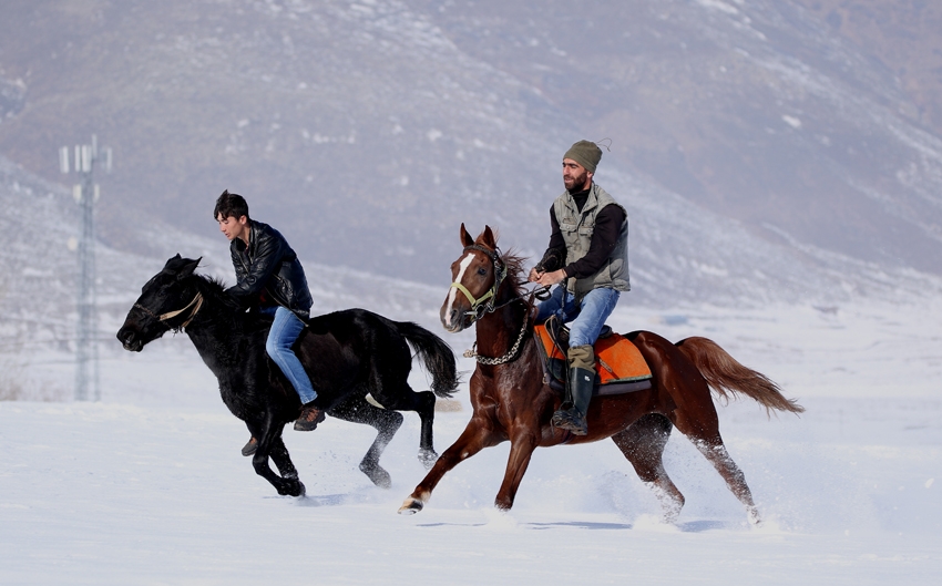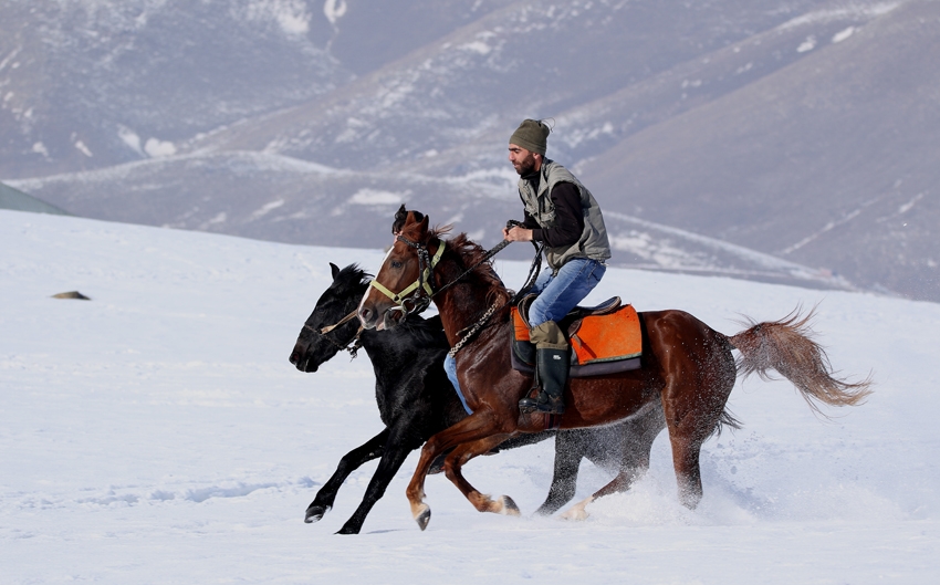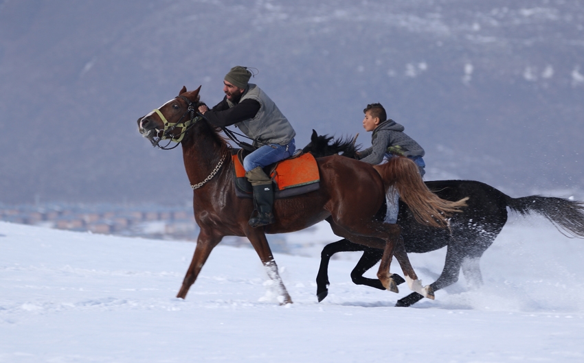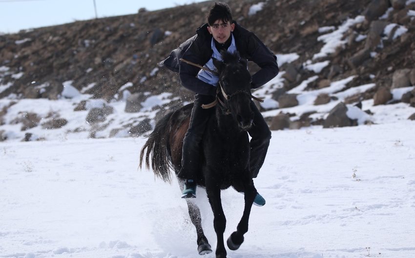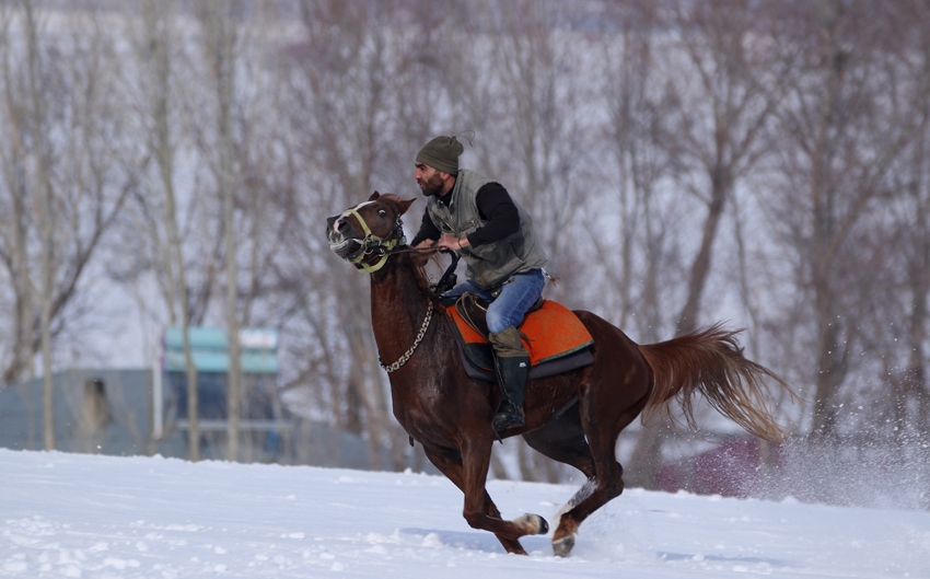 Atların kar üstünde yarış hazırlığı