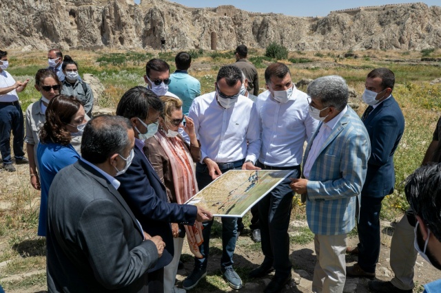 Vali Mehmet Emin Bilmez ve ilgili kurum amirleri, Bakan Yardımcısı Yavuz’a Van Kalesi’nin güneyinde eski Van şehrinde yapılması planlanan restorasyon çalışmaları ile ilgili harita üzerinden detaylı bilgi verdi.