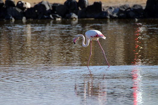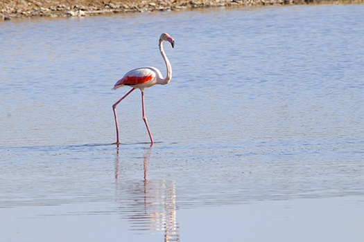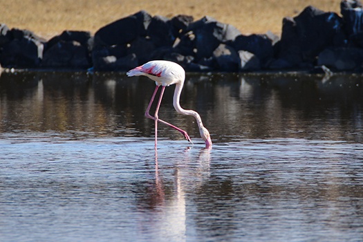 Yaklaşık 303 kuş türünün yaşadığı ve göçmen kuşların uğrak noktası milli parkta, daha önce bölgede çalışma yapan bilim insanlarının sadece uçarken görüp kayıt altına aldığı büyük flamingonun, bölgedeki sulak alanda beslenmesi AA ekibince görüntülendi.