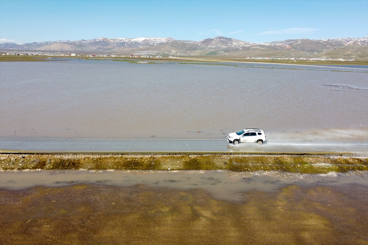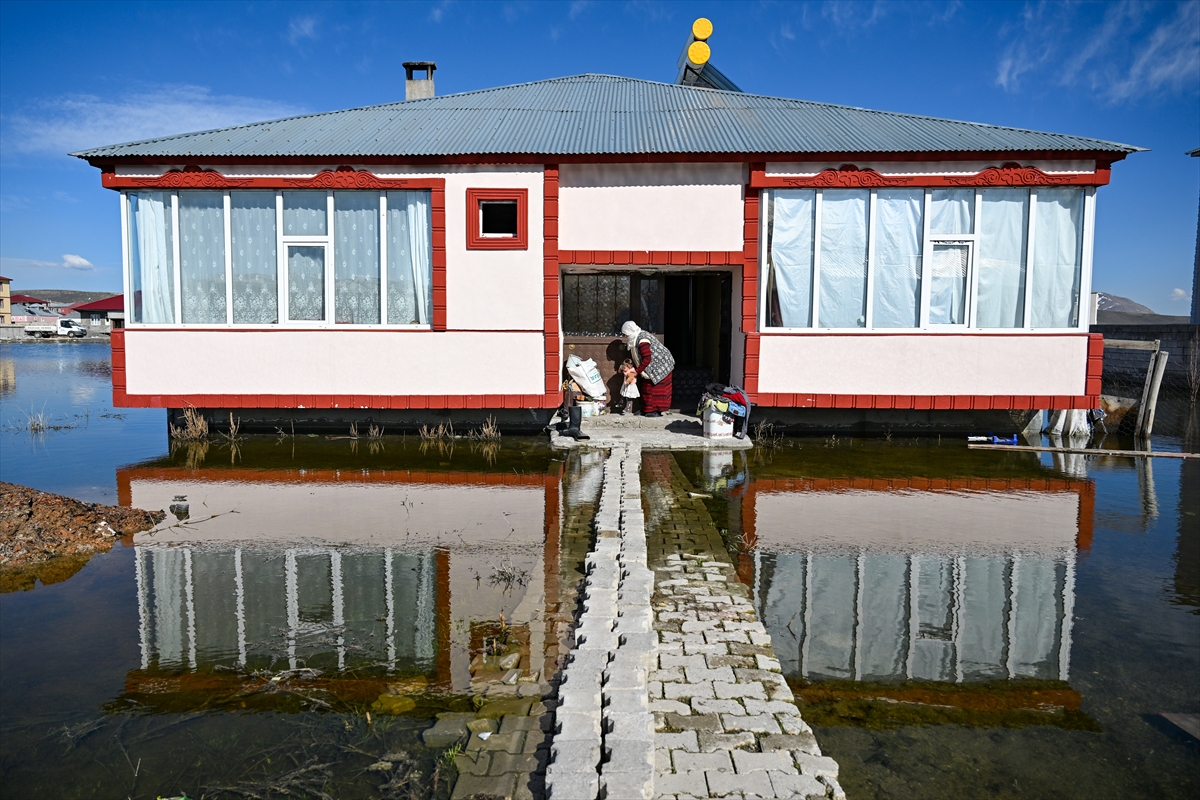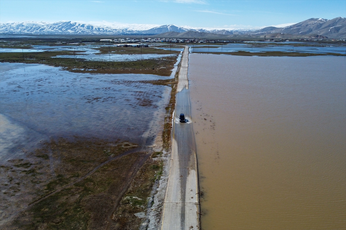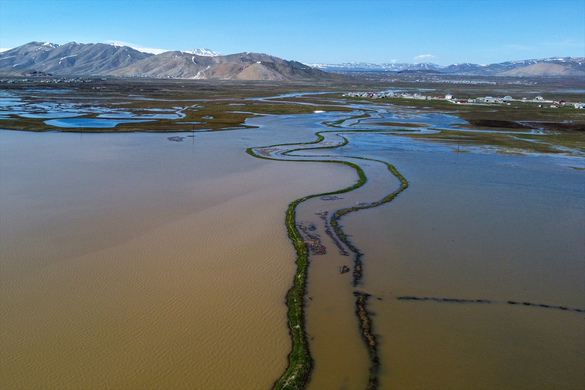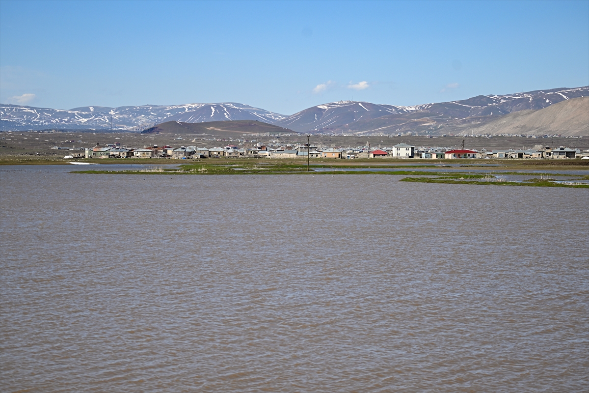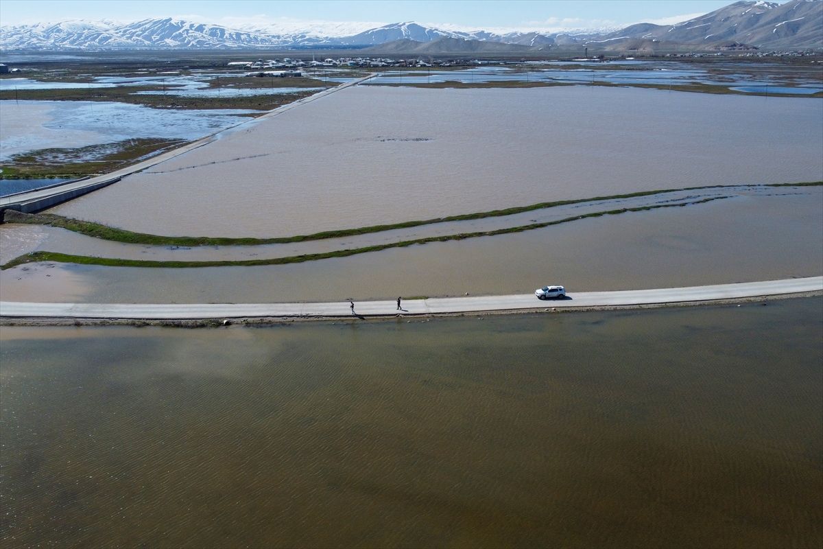 Van'da karların erimesi ve yağışlar nedeniyle Çaldıran Ovası'ndaki araziler ve bazı evler su altında kaldı.