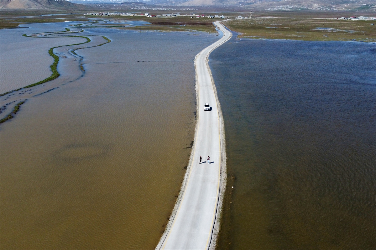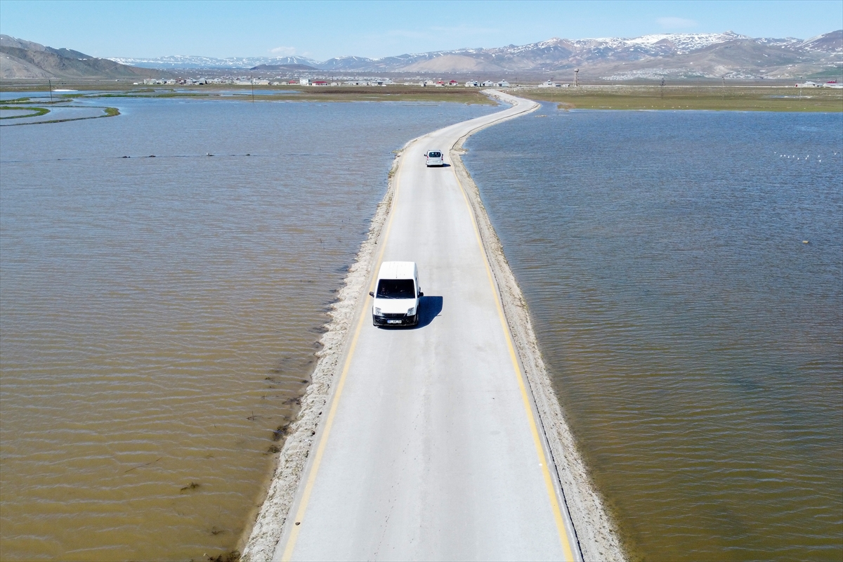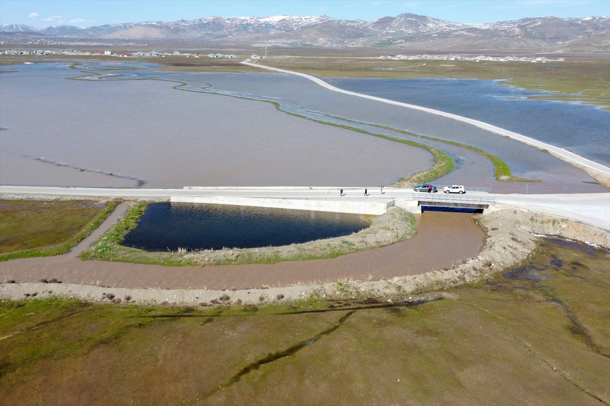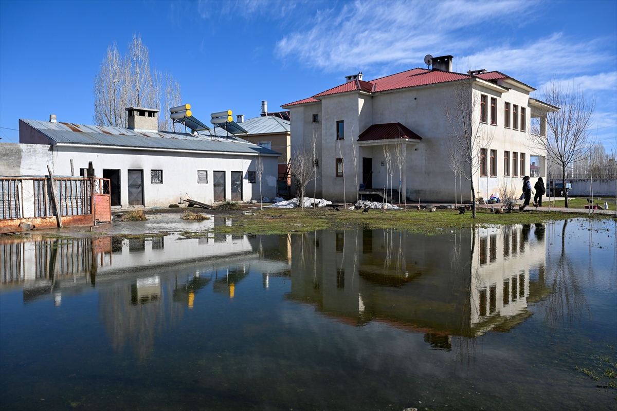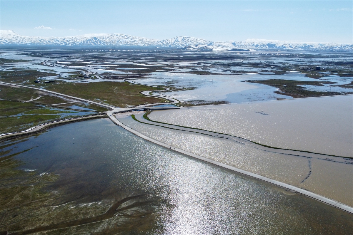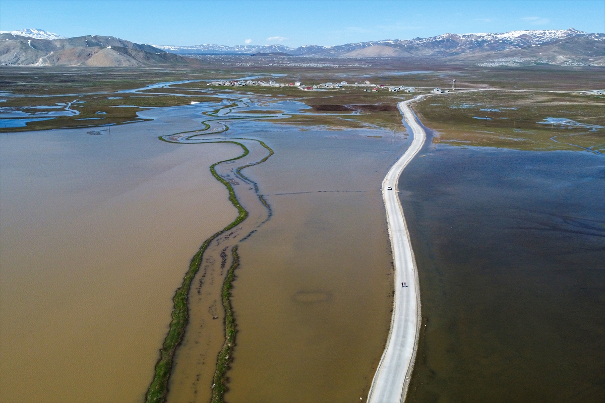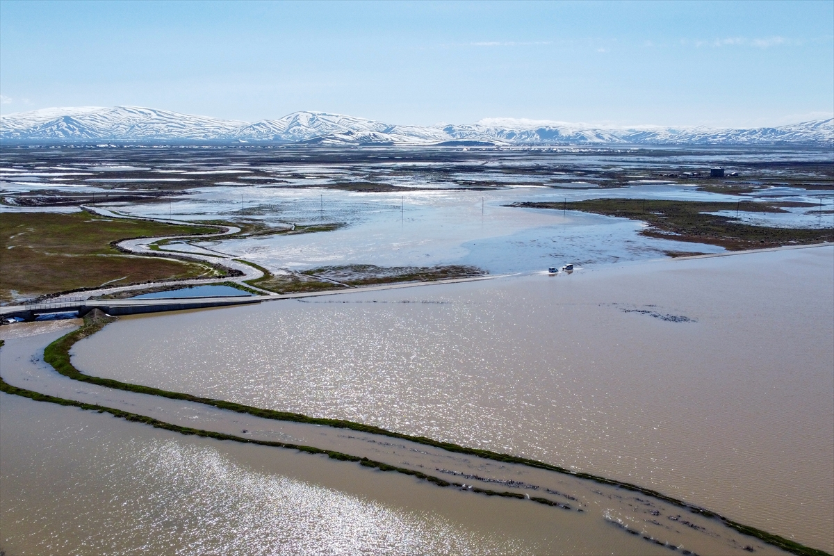 Van'da karların erimesi ve yağışlar nedeniyle Çaldıran Ovası'ndaki araziler ve bazı evler su altında kaldı.