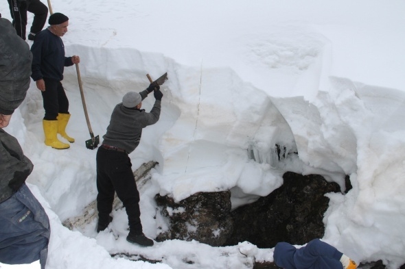 Dağdaki Cula Deliği'ne yaz için tonlarca kar depolandı