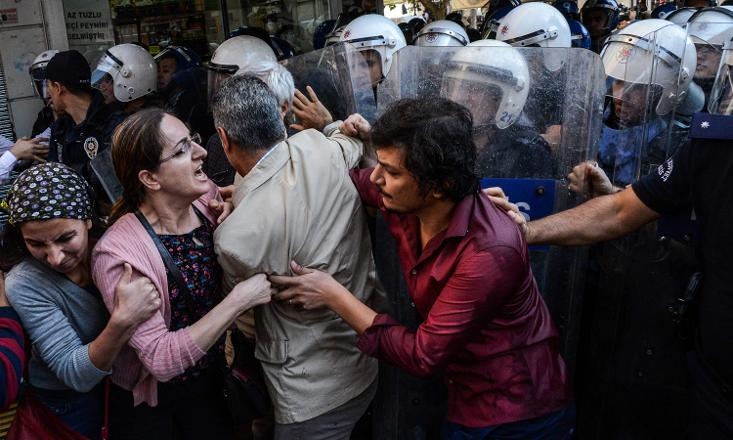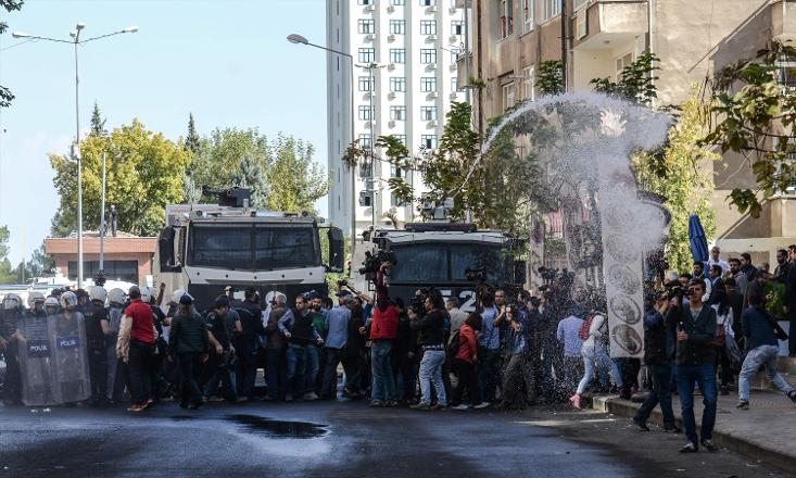 Polisin biber gazı ve tazyikli suyla müdahale ettiği yurttaşlar, saatler geçtikçe daha da arttı. Polis de bölgede çevik kuvvet ve TOMA ile önlem aldı.