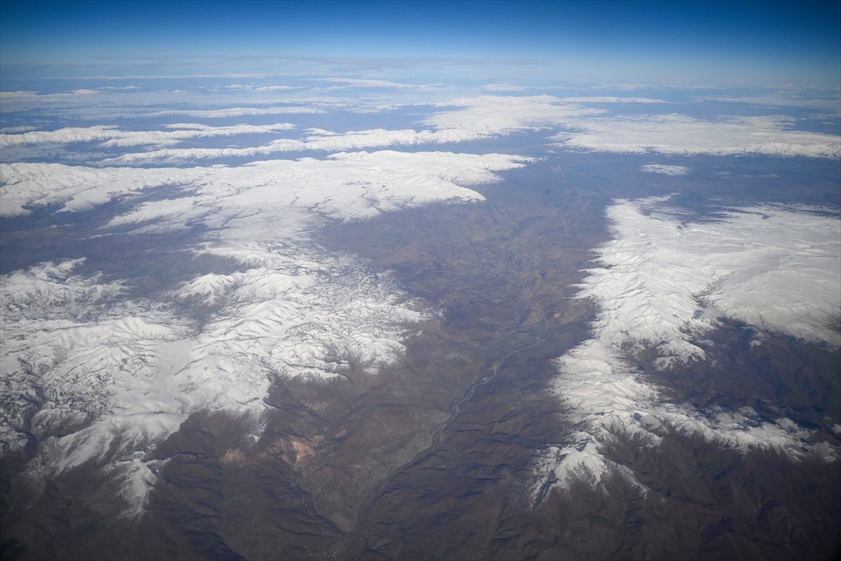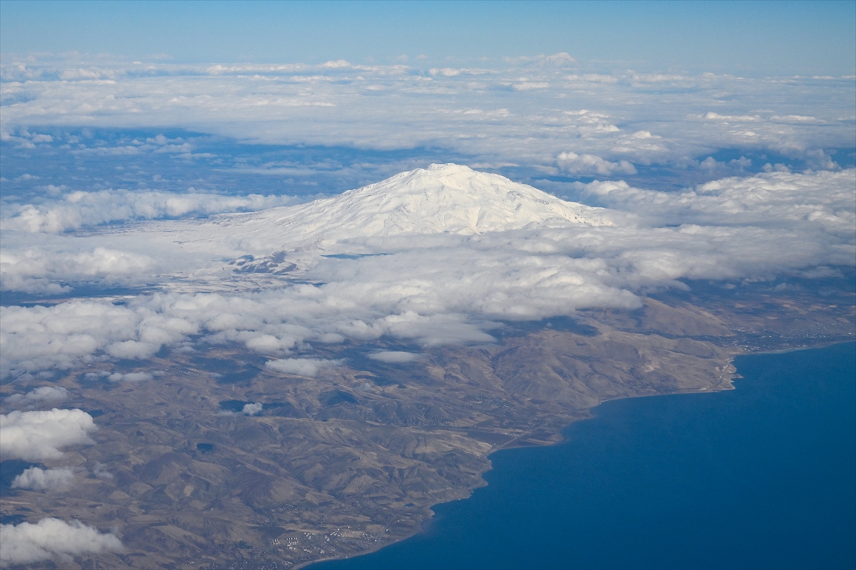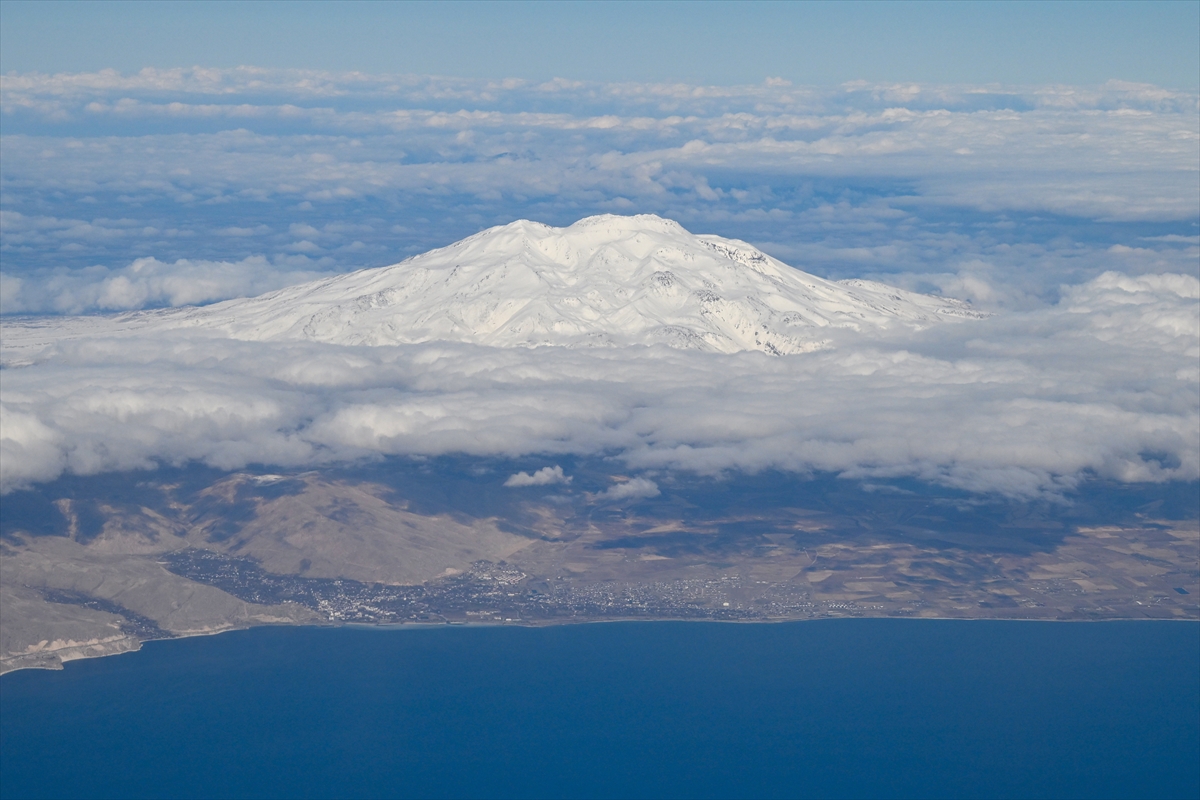 Kış mevsiminin yaklaşmasıyla, Türkiye'nin beyaza bürünmüş karlı dağları, uçaktan görüntülendi. Van Gölü'nün kuzey noktasında yer alan 4 bin 58 metre yüksekliğiyle Türkiye'nin en yüksek 3. dağı Süphan Dağı'nda da soğuk ve karlı hava etkisini sürdürdü.