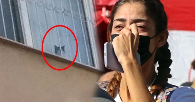 Hasarlı binanın yıkımı esnasında bir kedi 8. kattan cama çıktı