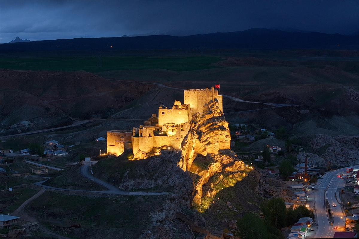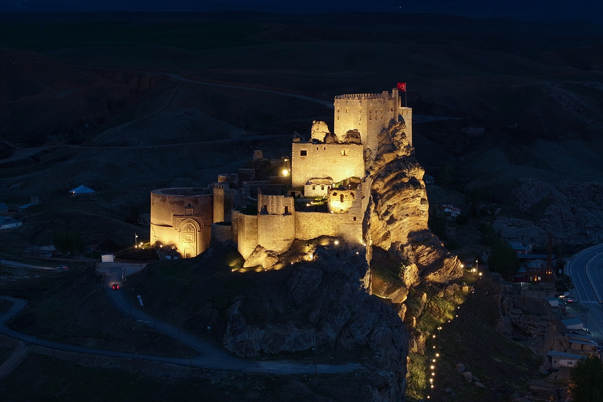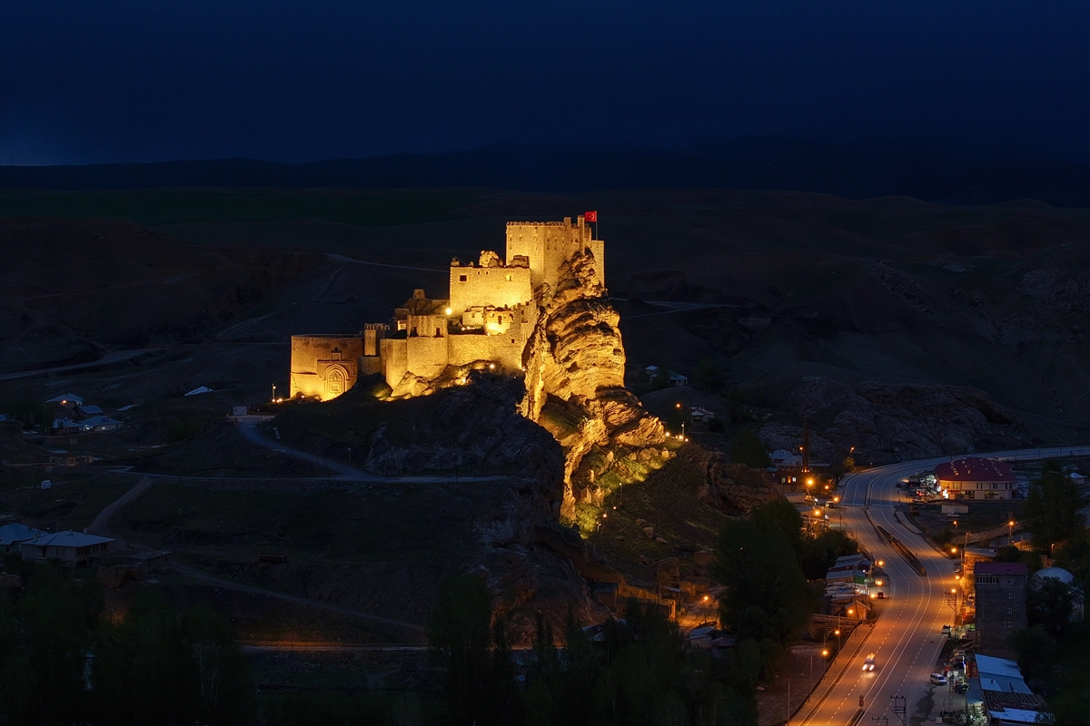 Van'ın Gürpınar ilçesinde bulunan ve dünyadaki şato planlı 17 kaleden biri olan Hoşap Kalesi, restorasyon ve ışıklandırma çalışmalarının ardından güzel görüntü oluşturdu.