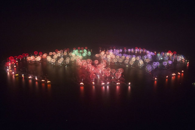 2013’ün son dakikalarında başlatılan geri sayım ardından 2014 yılına 400 bin havai fişek peş peşe ateşlenmesi ile başlayan gösteri başladı.