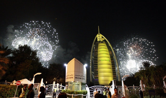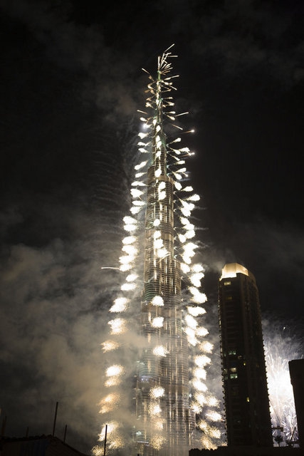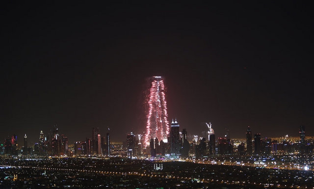 Dünya 2014’e coşku ile girerken, Dubai’nin kıyı şeridinde 50 kilometre boyunca yapılan ve televizyonlardan da canlı yayınlanan 400 bin havai fişeğin kullanıldığı gösterinin Guinness Dünya Rekorlar Kitabı’na girdiği ifade edildi.