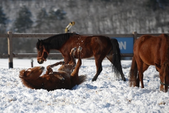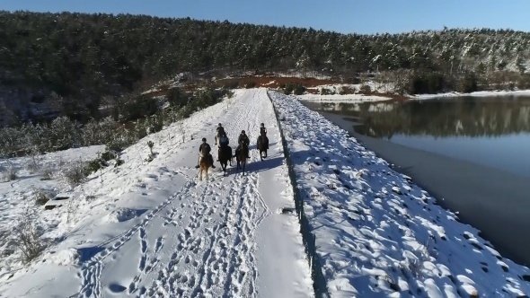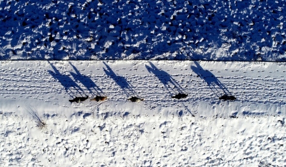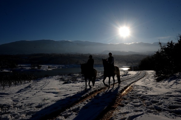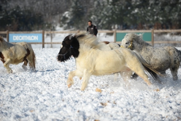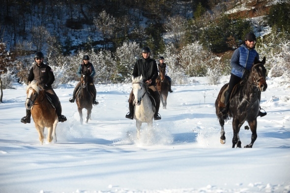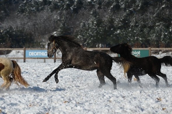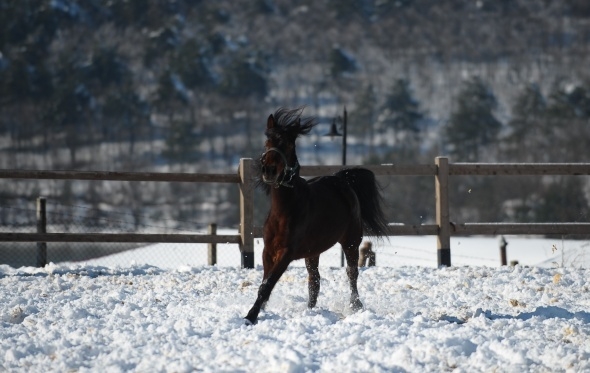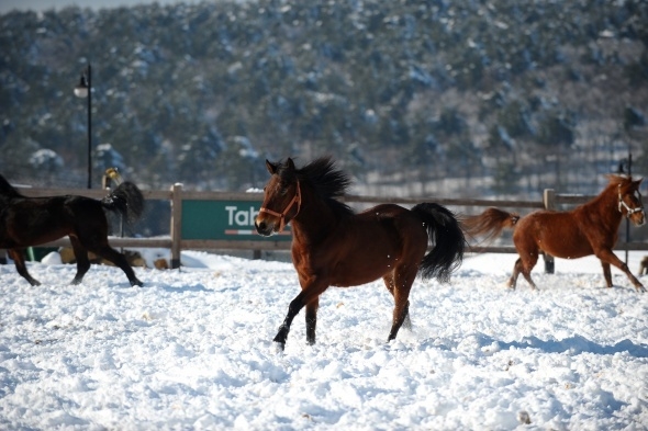 Karlar altında dörtnala özgürlük havadan böyle görüntülendi