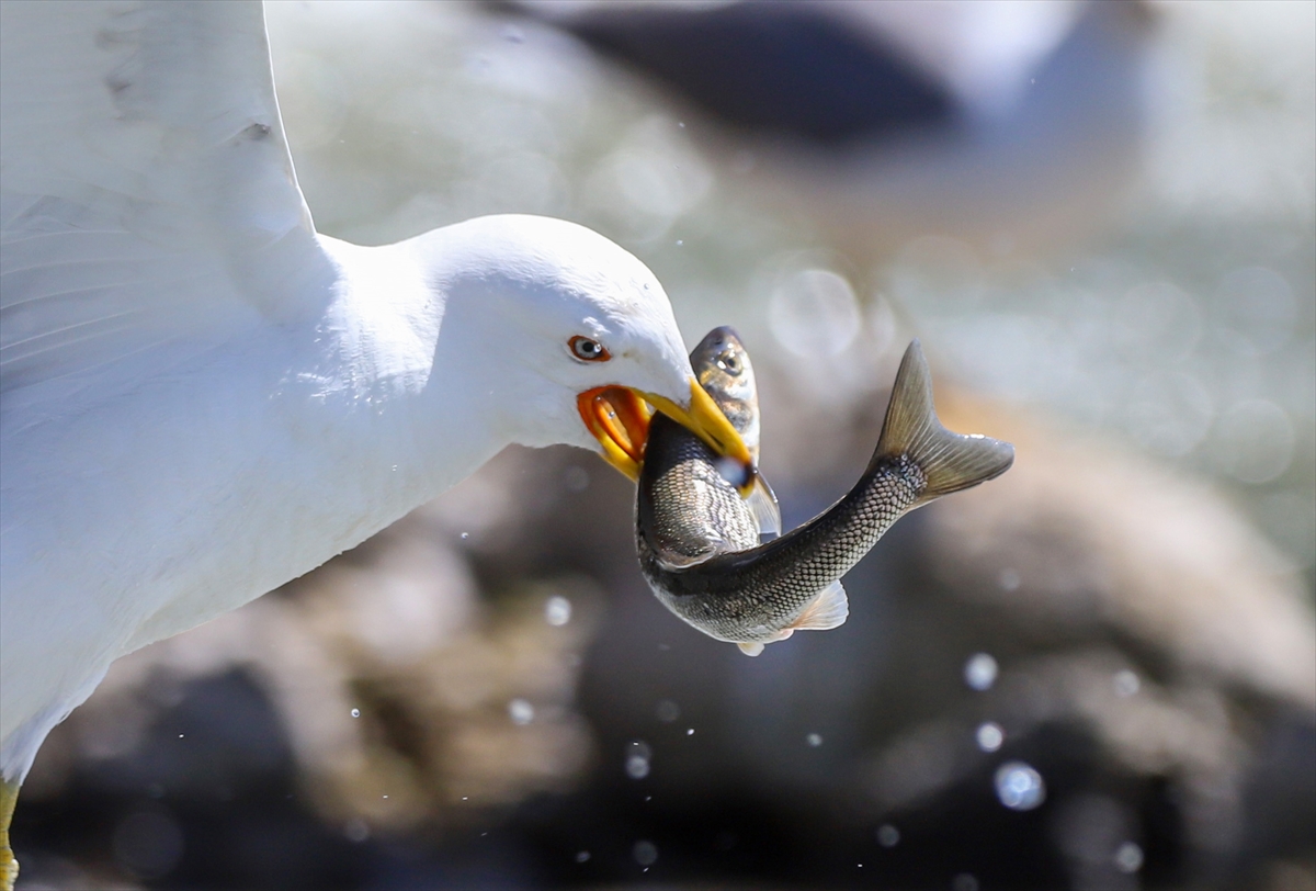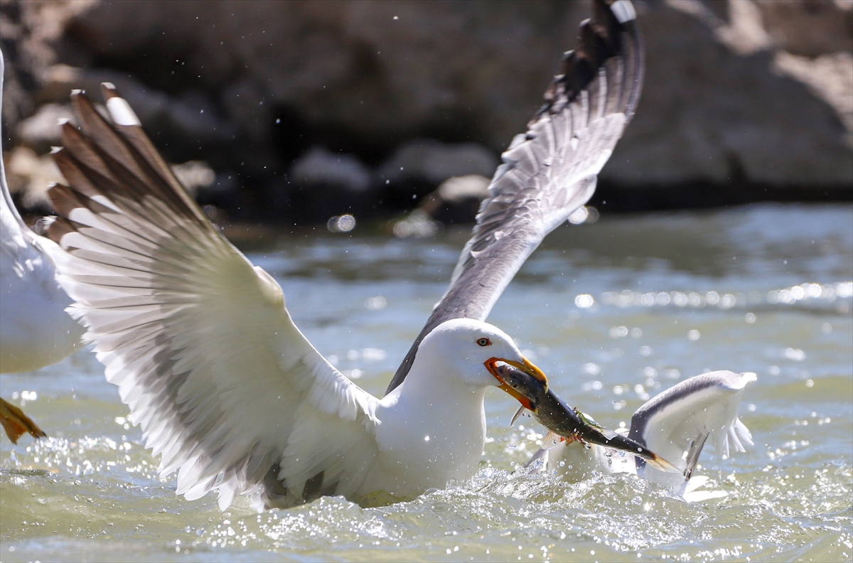 Van Gölü Havzası'nda yaşayan martılar, üremek için suyun tersine yüzerek tatlı sulara göç eden inci kefallerini avlayarak besleniyor.