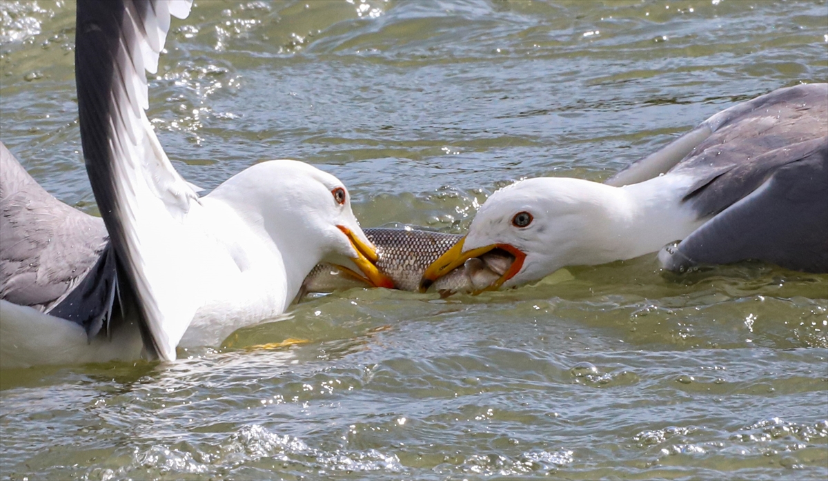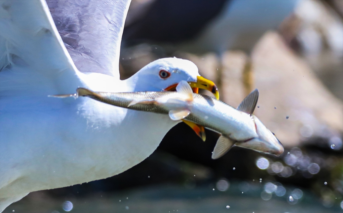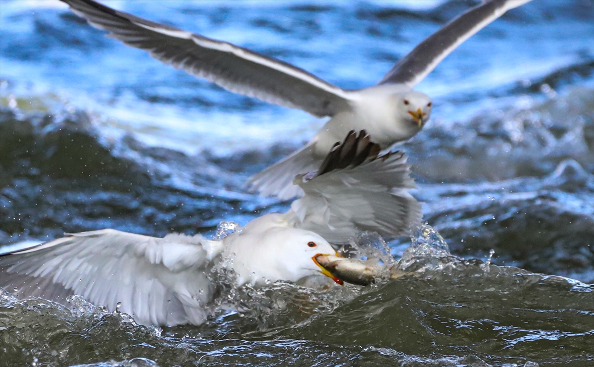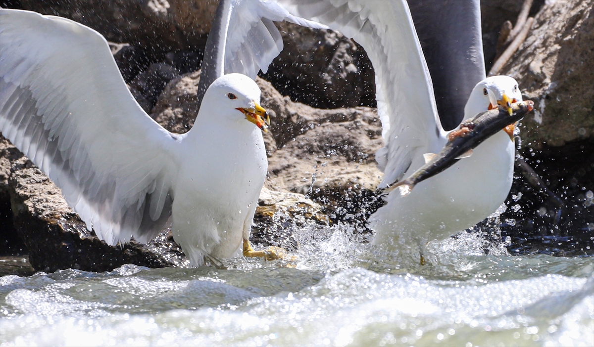 Martıların göç yolculuğundaki inci kefallerini avlama mücadelesi