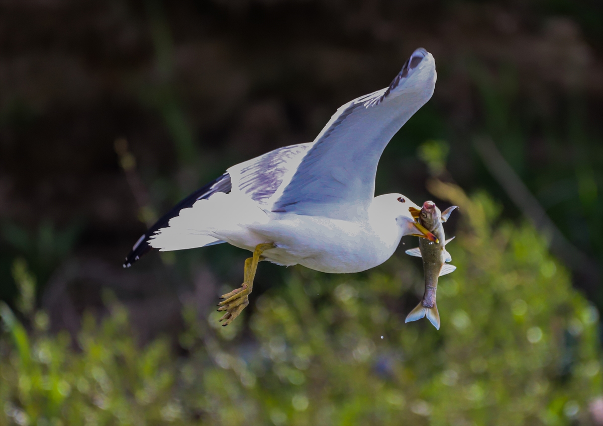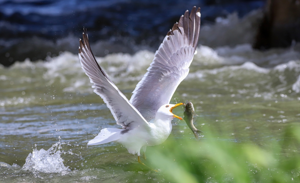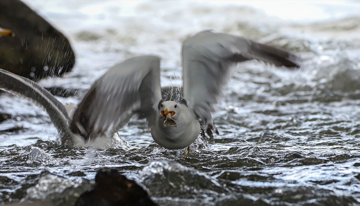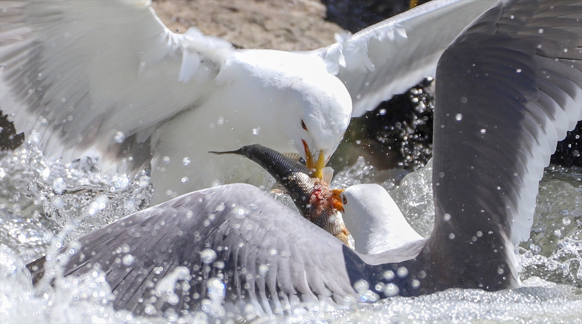 Martıların göç yolculuğundaki inci kefallerini avlama mücadelesi