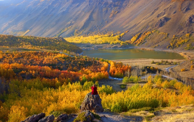 Sarı ve kızıl tonların birçok rengini içinde barındıran Nemrut Kalderası, bugünlerde ziyaretçiler tarafından doğal fotoğraf stüdyosuna dönüştürülmüş durumda.