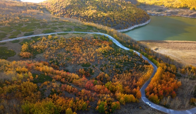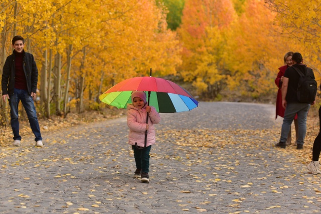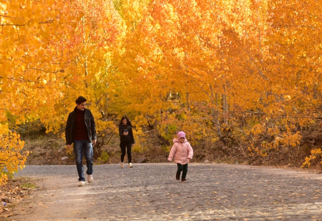 Kalderayı ziyarete gelen aileler ve vatandaşlar, sararan ve kızıl renklere boyanan ağaçların oluşturduğu yollarda ve vadilerde fotoğraflar çekiyor.