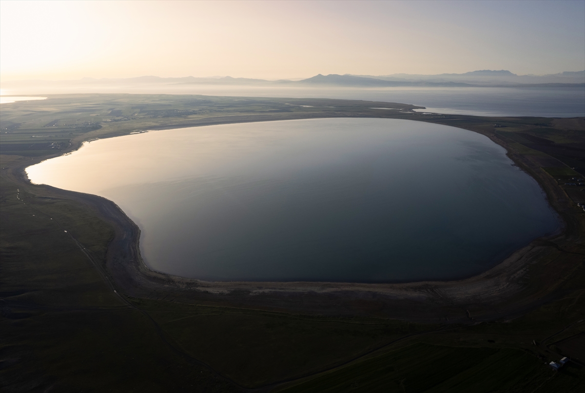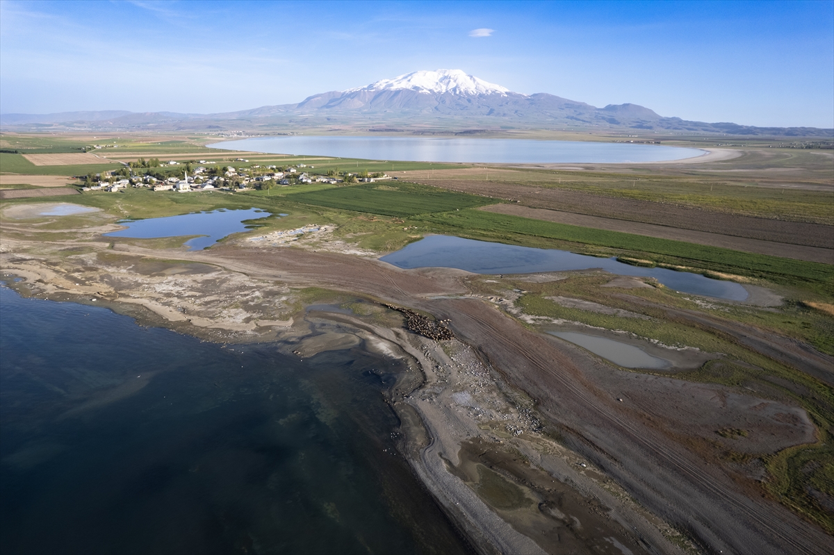 Su seviyesinin düştüğü Arin Gölü havadan görüntülendi