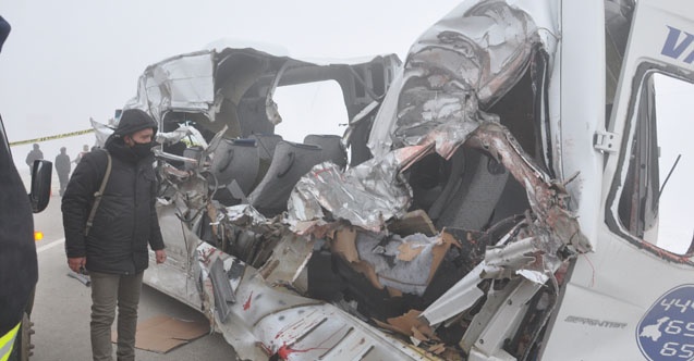 Sürücülerinin isimleri öğrenilemeyen 30 AAB 184 plakalı yolcu minibüsü ile karşı yönden gelen 33 CKB 35 plakalı tır çarpıştı.