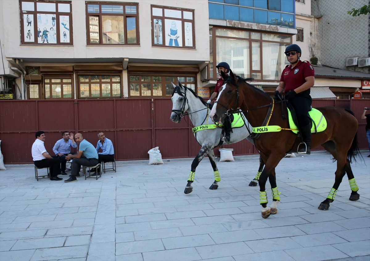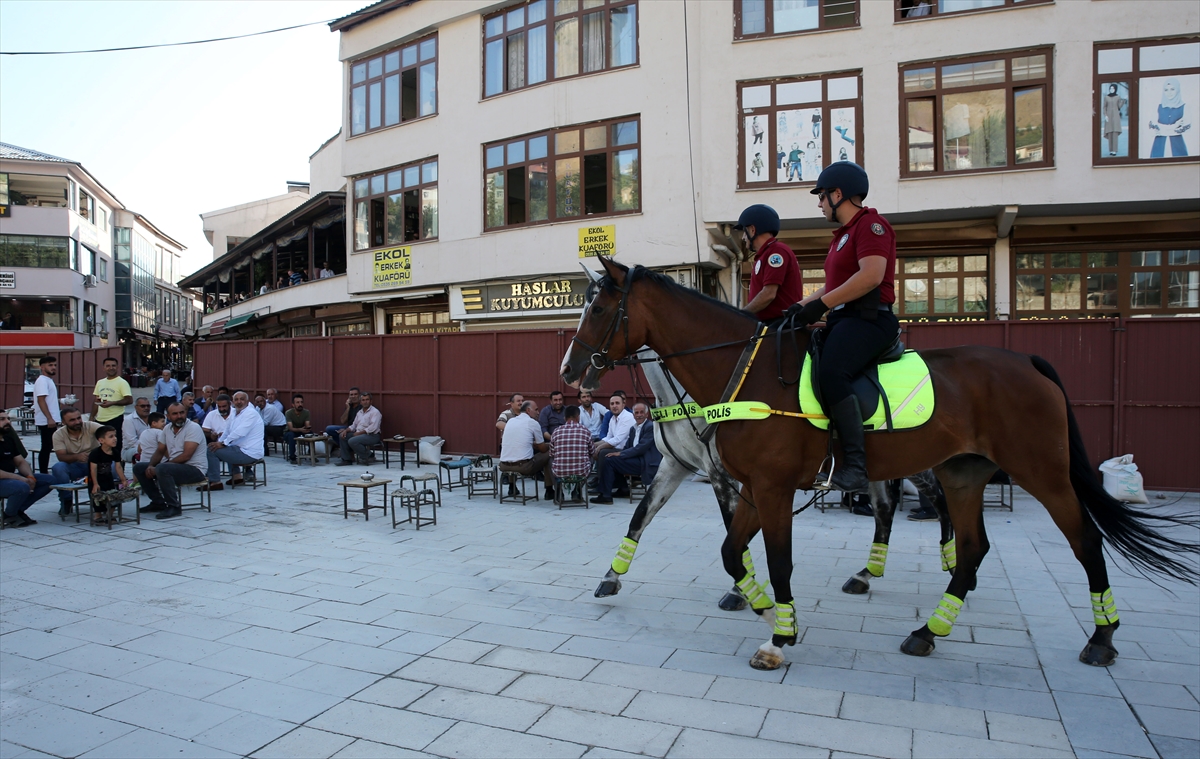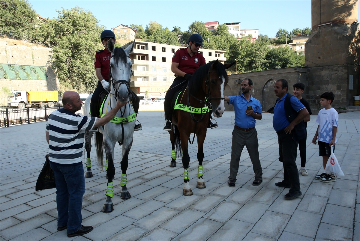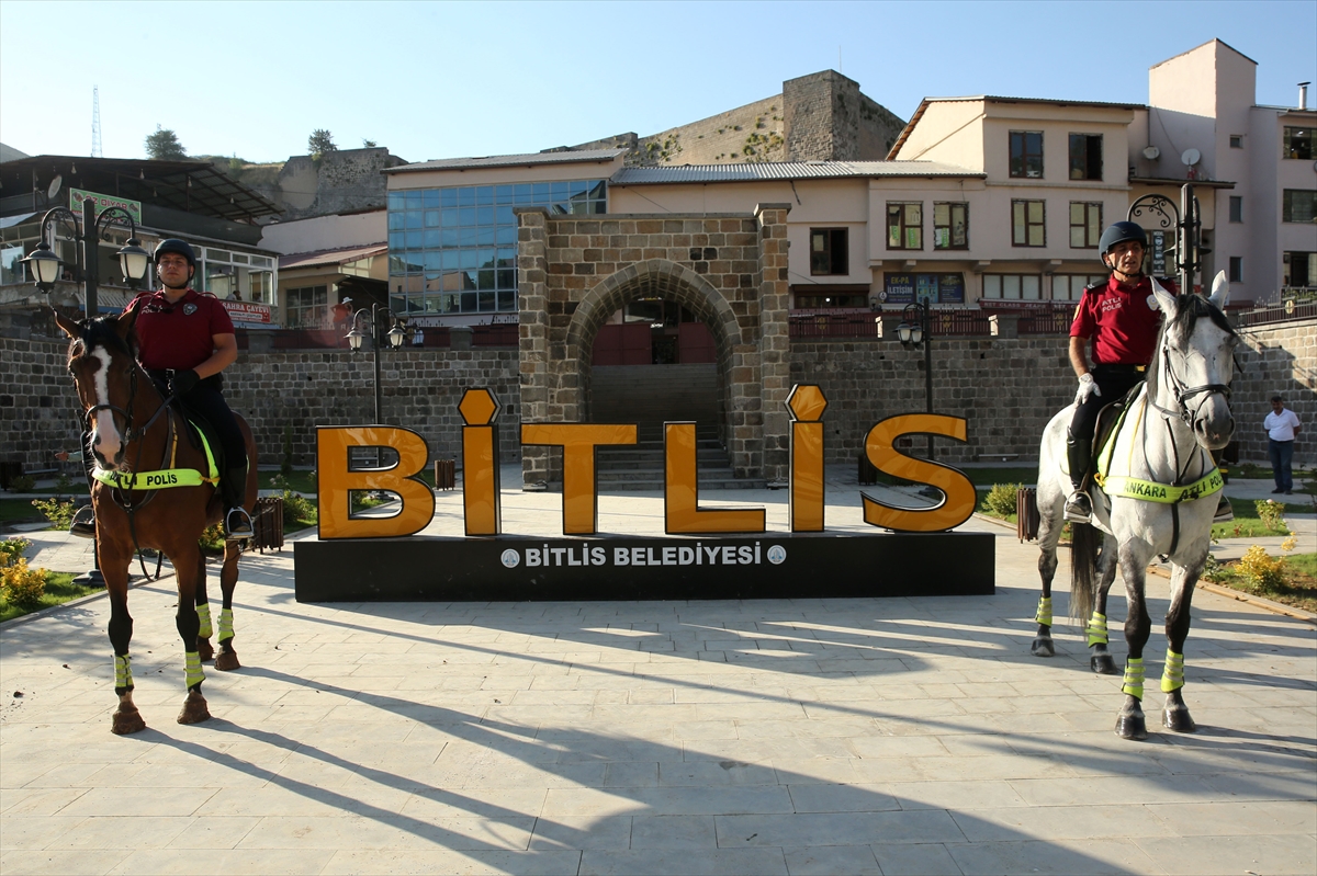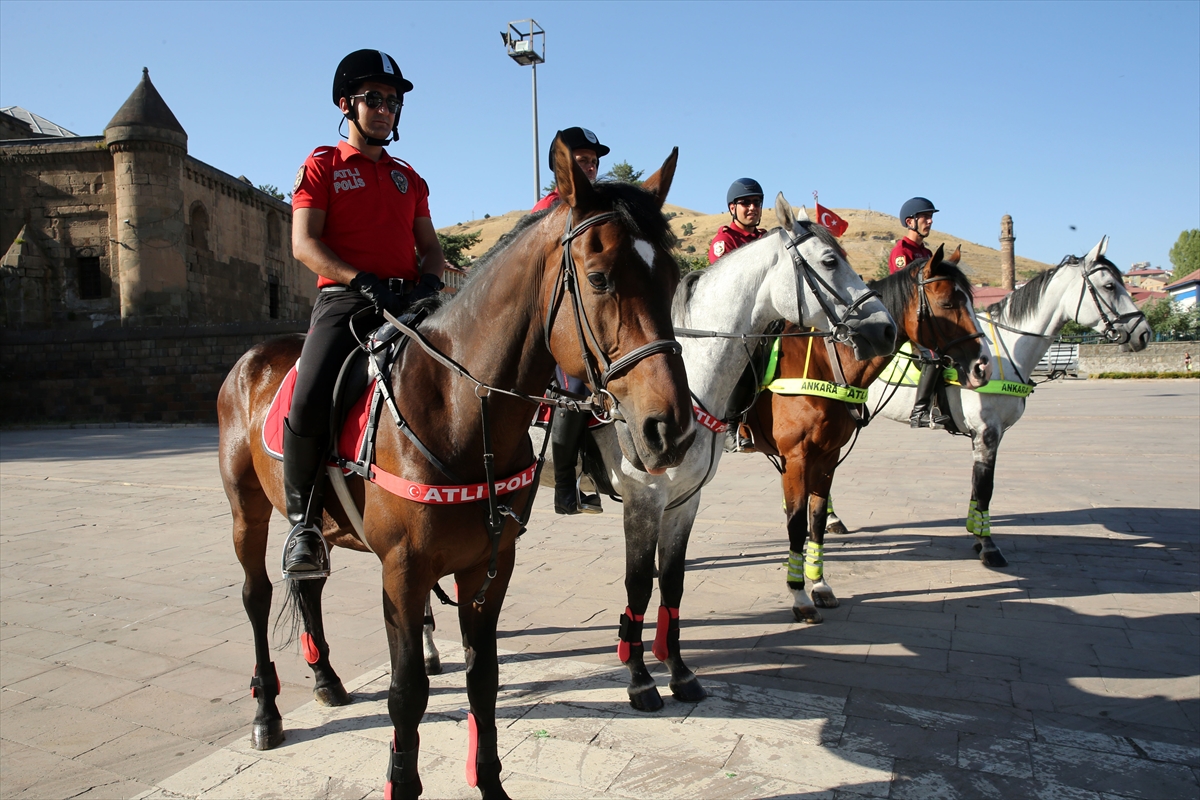 Bitlis'in Ahlat ilçesinde düzenlenecek Malazgirt Zaferi'nin 952. yıl dönümü etkinlikleri için Ankara ve Van'dan gelen atlı birlikler, kent merkezinde devriye görevi yaptı.