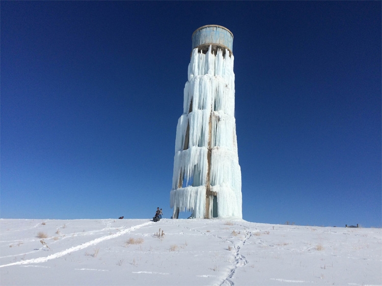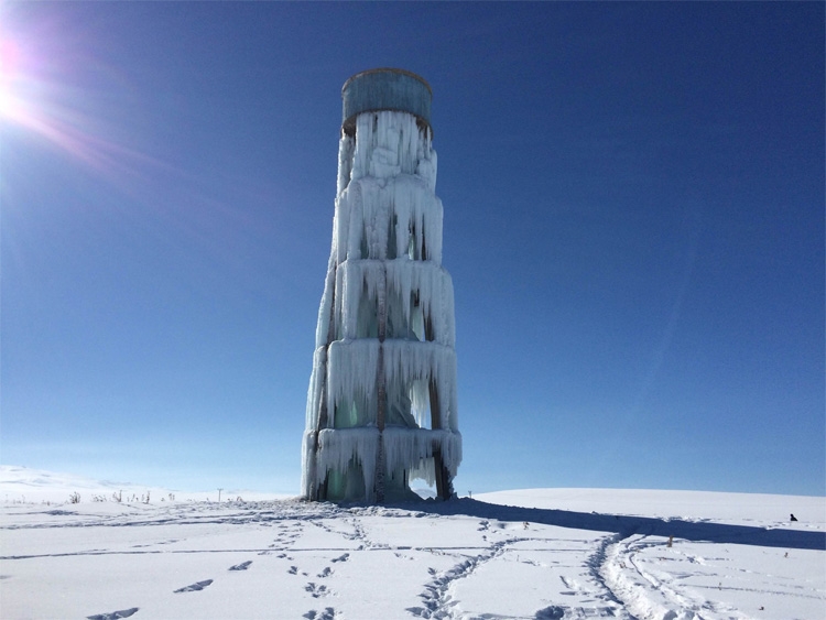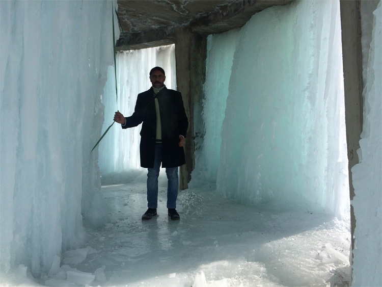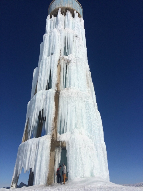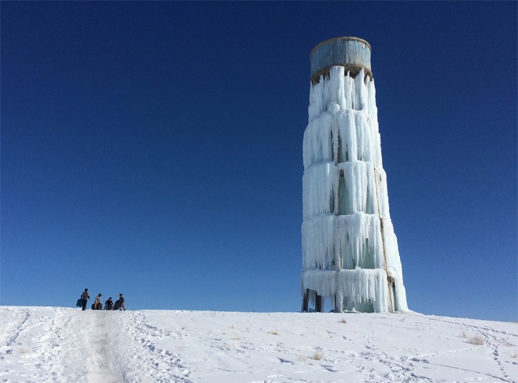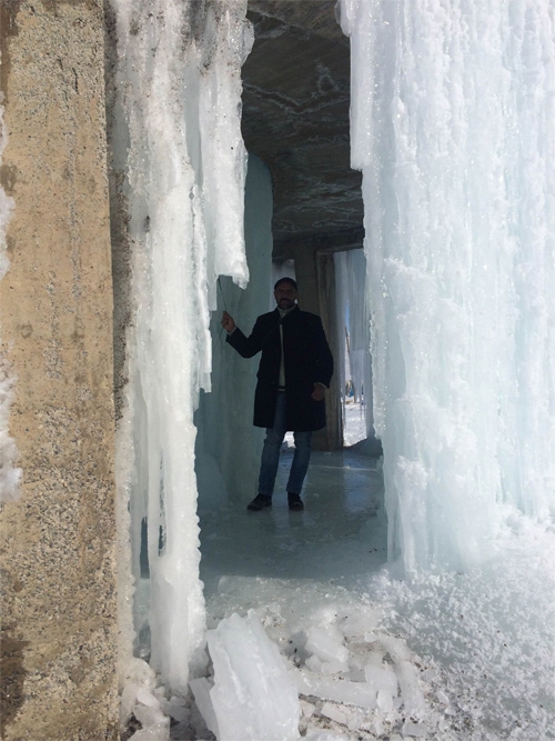Van’ın Özalp ilçesinde gece hava sıcaklığının eksi 25 dereceye kadar düşmesi sonucu ilçeye bağlı Sarıköy Mahallesi’nde bulunan yaklaşık 20 metre yüksekliğindeki su deposundan çevreye akan su, buzdan bir şelaleyi andıran görüntüler oluşturdu.