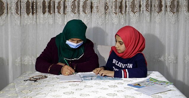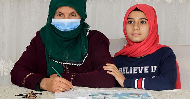 Okuma yazma bilmeyen anne, bu nedenle yaşadığı zorlukları aşabilmek için 11 yaşındaki torunu Zeynep İmre'den ders almaya başladı.