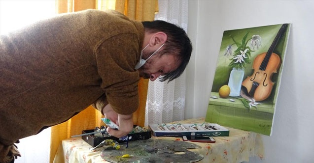 Van’ın Edremit ilçesinde yaşayan ve doğuştan elleri olmayan Vedat Kiyat, babasının şehit edilmesinin ardından yalnızlığını resimlerle gideriyor.
