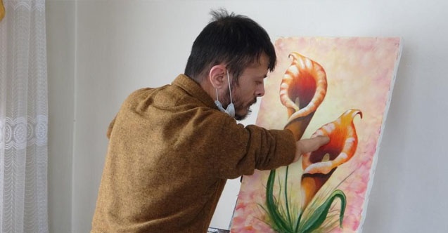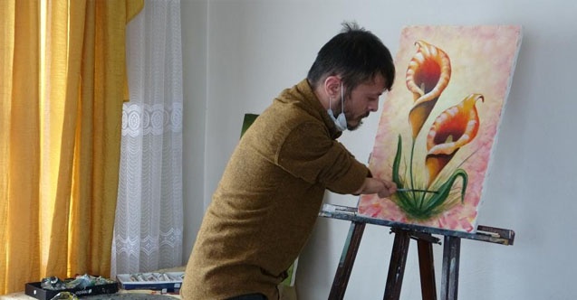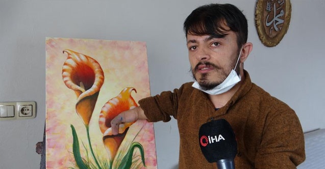 Edremit ilçesine bağlı Eminpaşa Mahallesi’nde ikamet eden ve doğuştan iki eli olmayan fiziksel engelli Vedat Kiyat, 8 yaşındayken babasının şehit edildiğini ve o günden sonra kendini resim çizmeye adadığını söyledi.