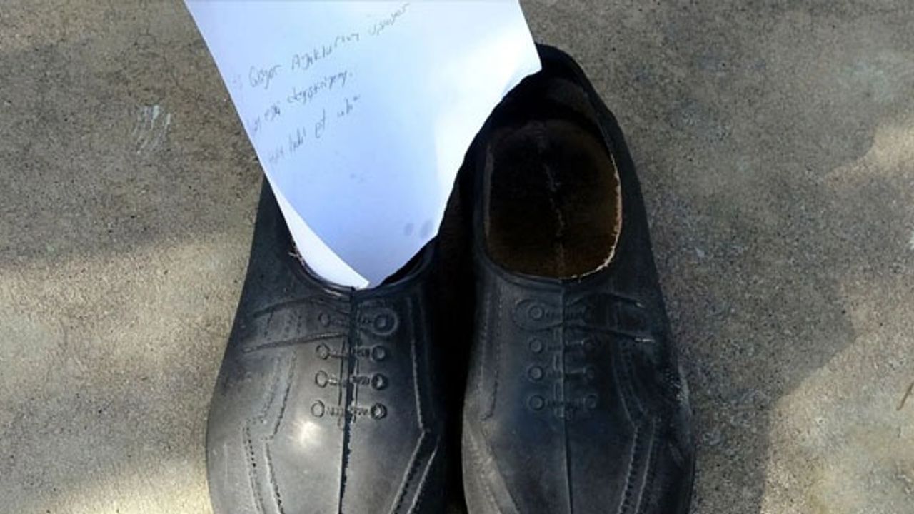 VAN'da kış için aldığı ayakkabıları yerinde göremeyen Yakup Yeşilırmak, bir lastik ayakkabı bir de not buldu.