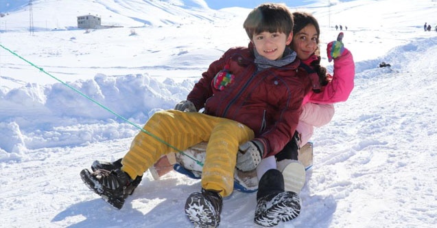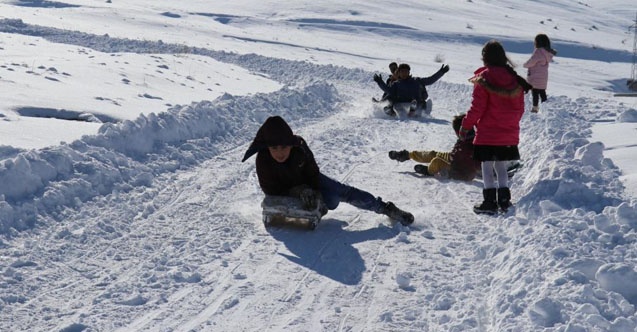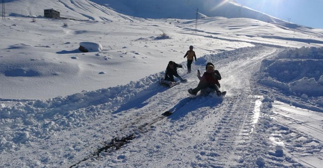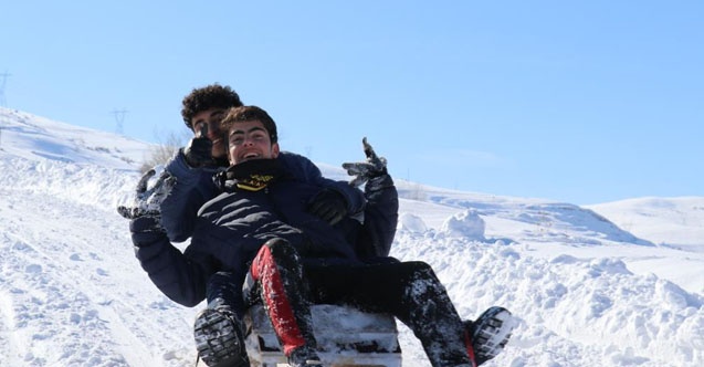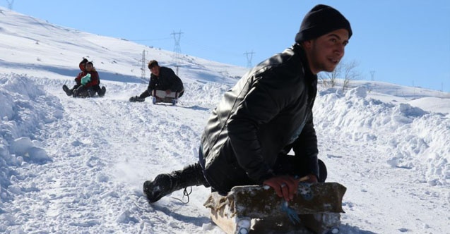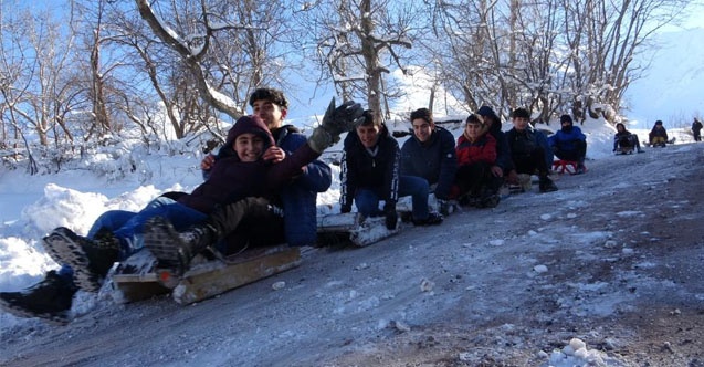 Çocuklar, “Pandemi nedeniyle hep evdeyiz. Canımız sıkılıyor. Bu nedenle saat 13.00 ila 16.00 arasındaki zamanımız kızakla kayarak kartopu oynayarak geçiriyoruz” dediler.