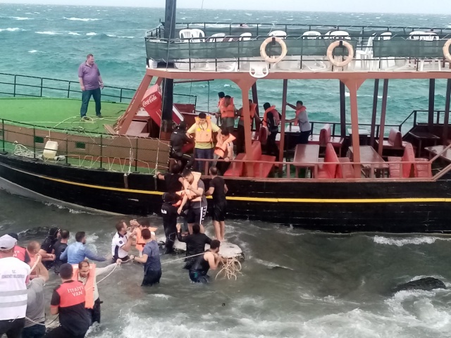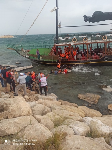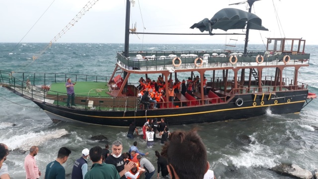 Kıyıya yaklaşık 10 metre kala karaya oturan teknedeki yolcular korku dolu anlar yaşadı.